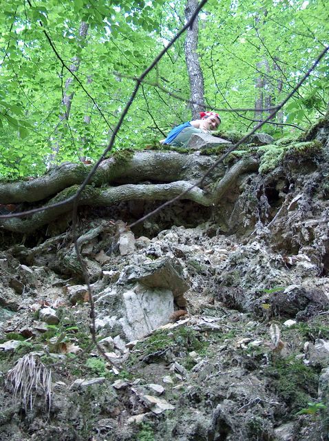 Ma agat de o radacina ca de firul vietii. Incerc sa-mi mut picioarele macar cu o jumatate de metru mai incolo. Covorul inselator de frunze imi fuge insa de sub talpi si alunec vreo 2 metri. Inspre haul al carui sfarsit nu se vede. Se simte, doar, prin semiintunericul mascat in ceata. Simt o miscare la dreapta mea, ceva mai jos, la buza “balconului”. E Calin. El a alunecat mai zdravan ca mine, dar, in cadere, a reusit sa apuce disperat o bucata de radacina. Piciorul drept, cu care s-a sprijinit pe coltul de stanca tradator (si a carui cadere se tot aude, in gol, vreo 15 secunde), ii zvacneste incontrolabil. Trebui sa urcam la baza haului. Asta nu mai e joaca. E sinucidere curata. O provocare a destinului. Nu vreau sa cred ca “karma” noastra este sa ne lasam dintii acolo. Ne taram in sus, uneori smulgem muschii sa dam peste o radacina de sustinere. Cativa centimetri, o jumatate de metru si gandul ca suntem asteptati intregi acasa.