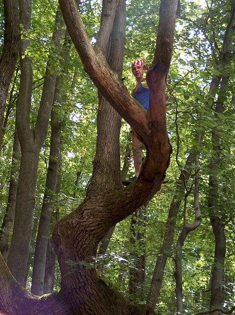 Ochisem, la venire, locul unde urmam sa atacam panta. Calin vrea cu bicicleta, dar, dupa o scurta incercare de cativa metri, isi da seama ca e o nebunie. Asa ca plantam bicicletele in paza unor tineri veniti tocmai din Ungaria si-i dam drumul in sus. Covorul de frunze este inselator, picioarele aluneca fara posibilitatea de a gasi un sprijin. In cele din urma, ne continuam urcusul ca maimutele, in maini si picioare. Urcam vreo 50 de metri de panta in 80 de grade, dupa care ne sprijinim cu spatele de un copac, lasandu-ne plamanii sa urle dupa aer. Gatul mi-l simt gros, jugulara imi bate nebun in tample, ochii-mi sunt acoperiti de priviri cetoase. Stam asa, cateva minute, e incredibila forta pe care ti-o da panta, odata ce ai invins-o. Continuam urcarea, iar dupa alti 50 de metri deviem la stanga: alpinistul din Calin simte stancile, care trebuie sa se ascunda nu departe de noi. Dupa un alt urcus nebun, ajungem la o alta stramtoare, chei in cheile Ticaului, o prapastie, de fapt, a carei capat este ascuns in negura. Aglomerarile de stanci fac un fel de balcon, ca si panta de saritura cu schiurile, dupa care stanca taie vertical in jos drumul spre necunoscut. Nu se vede prea bine ce-i mai jos de “balcon”, pornim, asadar, la escaladarea, de data aceasta, de sus in jos, a stancilor. Calin o ia pe un traseu mai periculos. Totdeauna asa pateste cand vede stanci: nu mai judeca. Ajunge jos, la baza balconului, dupa ce aluneca in gol cativa metri si se prinde, ca prin minune, de o creanga. Se stabilizeaza, dupa care caut o posibilitate mai usoara de coborare. Gasesc ceva, pentru care trebuie intai sa urc, dupa care cobor, tinandu-ma de radacini. Cu dreapta scurmand sub muschii unei radacini, aceasta cedeaza, alunec si, ca din mersul trenului, ma prind de un copacel. La 5 metri sub mine, pe Calin il tradeaza stanca pe care si-a sprijinit piciorul drept, dar se prinde, disperat, de o alta radacina. Sub noi nimic altceva decat stanca verticala in jos, haul fara fund. Asta nu mai e joaca. Stam lipiti de orice poate oferi macar un punct de sprijin. Regula de aur a alpinistului – minimum trei puncte de sprijin, aiurea, e teorie. Ascultam caderea fara sfarsit in gol a stancii pe care a stat Calin si asteptam ca linistea sa ne inunde din nou. Incet – incet, o mana intinsa, un picior ridicat, o farama de scobitura, invingem cei circa 7 metri de baza a prapastiei, si ne cataram la siguranta unui copac. O privire inapoi – am fentat din nou karma, si urcam mai departe. Sub priviri ni se arata mai multe ciudatenii stancoase, de asta data fara pericol, crescute in umbra copacilor asa, doar invitandu-ne la catarat. Nu ne scapa nici una. Nu conteaza marimea, conteaza doar momentul in care stai agatat in degete si varful picioarelor si incerci sa vrajesti piatra care-ti acorda doar cateva secunde de stabilitate. Cel mai important lucru – sa-ti pastrezi greutatea in fata, pentru ca, in cazul in care aluneci in spate, nu te mai poate opri nimeni, poate doar bratele molcome ale Somesului, ce curge la vreo 200 de metri sub noi. Ridicam privirile umede de transpiratia pericolului si vedem, la nici 50 de metri, varful dealului. Cu plamanii bombardandu-ne in creier, ajungem acolo, unde, aruncati pe spate, in linistea nemaibantuita de nimeni, ne putem crede, cu adevarat .