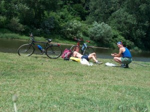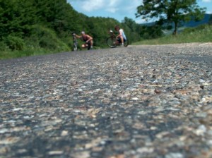 Am ales, pentru cel de-al doilea raid turistico-biciclistic, Cheile Ticaului, asta, poate si in urma zvonurilor pe care le-am auzit, cum ca, inainte de ’89, acolo se exploata un zacamant de granat (silicat natural de calciu, magneziu, fier, mangan, aluminiu sau de crom, intrebuintat ca piatra de slefuit sau, in stare pura – de culoare rosie – ca piatra semipretioasa). Zalau – Ticau: 123 de kilometri, adica in jur de 5 ore de pedalat. Drumul spre Ticau a fost extrem de agreabil: privelisti minunat invaluite, atunci cand nu ne claxonau masinile, in tacerea greierilor. Cu un pic de adiere, nici nu am observat ca am trecut, rand pe rand, de Somes Odorhei, Inau, Alunis si am ajuns in Benesat, unde Somesul isi anunta, deja, prezenta cu un miros specific, nu neaparat suparator. Furati de dealurile impadurite care se intretaiau unul in celalalt, trecem cu capetele ca periscopul prin kilometri intregi de peisaje menite sa te readuca la salbaticie. Mai aproape de Somes, se simte, deja, prezenta turistilor de duminica – strigate si nelipsitele manele, atat in romana, cat si in maghiara. Ne punem in functiune barajul psihic, nu mai auzim nimic, vedem doar drumul care se deschide, putin cate putin, in fata noastra. Pe partea pe care circulam, cu calea ferata peste umeri, nu prea avem ce prinde: este un loc in care “civilizatia” si-a facut simtita din plin intruziunea. Cautam cu disperare un pod sau un vad, sa putem trece Somesul, cu gandul la dealurile impadurite care, parca, ne chemau. Absorbiti de greutatea stramtorii, pedalam in nestire, observand, in treacat, ca am parasit Salajul si am ajuns in Maramures. Dam in continuare din picioare, trecem de colonia din Ticau, podul nu vrea sa se arate nicaieri. Stiam, din drumurile anterioare, cu trenul sau cu masina, ca exista un pod, undeva prin Ulmeni, dar daca am fi pedalat pana acolo, cred ca in nebunia noastra nu ne-am fi oprit pana in Gutai. Facem, asadar, cale intoarsa, si descoperim intrarea in Salaj – un fel de nu stiu ce din beton, la fel de insignifiant ca importanta acordata zonelor turistice de aici. Culmea, dupa betoanele cu stema judetului, suntem in Salaj, dar mai pedalam inca vreo 10 metri, pana cand o tabla de metal ne anunta ca am iesit din Maramures. Aflam, intreband in stanga si dreapta, ca podul peste Somes l-am ratat la Benesat. Nu-i nici o problema, facem cale intoarsa, mai dam din picioare vreo 7 kilometri si descoperim si drumul de pamant care ducea dincolo. Un pod din tabla, peste care trecem facand ca trenul. Ajungem dincolo, pe un fel de drum ca in Eco Challenge: gropi, pamant, bolovani, panta etc. Stoarcem din noi ultimele puteri, trecem ca vantul pe langa taberele turistilor de duminica, care culmea, au parasit aglomeratia orasului, pentru a se ingramadi, unul in fundul celuilalt, in acelasi loc de pe malul Somesului. Gasim, undeva mai departe, un loc pe malul Somesului, fara picior de om pe o raza de 50 de metri. Daca, s-ar ivi, totusi, niste picioare mai faine, no problem, dam cu binoclul de armata. Facem focul, pregatim ceva de bagat sub nas si mestecam aprig – avem nevoie de forta ca sa urcam dealul, care, de departe, pare foarte inofensiv.