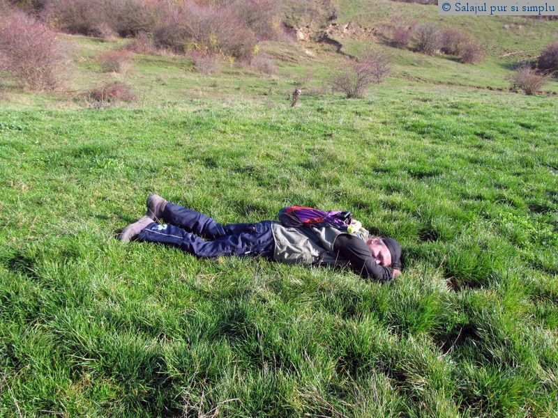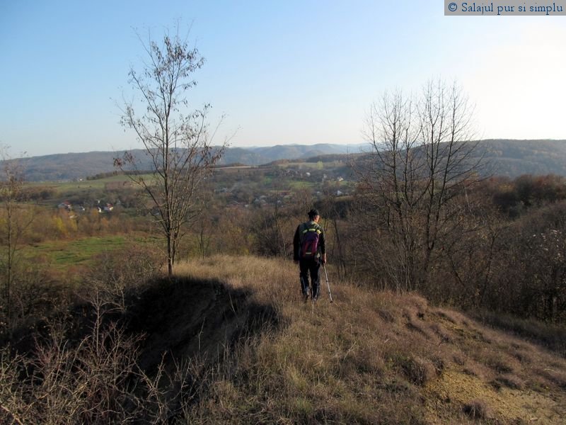 În cele din urmă, zgîriați – iar asta pișcă rău, cînd mai și transpiri, ajungem în capătul văii. Peșteri ioc. Ieșim pe cîmp, de unde Valea Someșului se deschide în fața noastră. Undeva departe. Sălajul e enorm. Undeva, în zare, se vede Valea Loznei. Valea Leșului, un defileu superb. E în grafic.