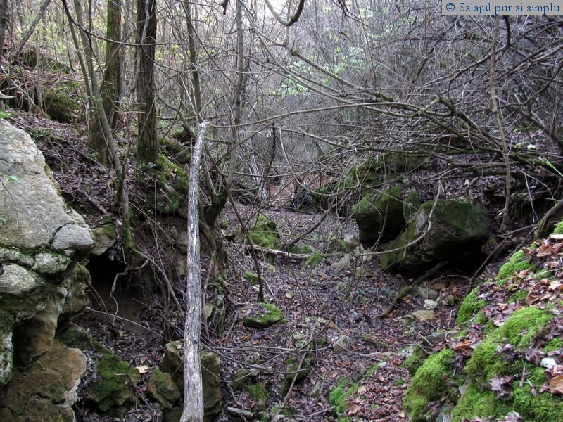 Sus, pe creasta dealului, pe cîmp, ne dăm seama că noi încă nu am găsit hălaiele. Ceea ce erau un punct de reper important spre Valea Scurtă. Așa că ne uităm după vite. Distingem noi ceva mugituri amare, a la vită cu ugerele umflate, undeva spre dreapta noastră și o luăm încolo. Și dăm peste o vale cu rupturi, ce s-ar putea să fie Valea Scurtă. Așadar, ne punem iară pe căutat peșteri. Mărginită de o parte de tufișuri enorme ce ascund rîpe adînci, ne zicem că am dat, în sfîrșit, de valea noastră. Și începem să intrăm printre pîlcurile dese de copaci, blindate de mărăciniș, spre adîncurile rîpelor. La început, dăm peste o gaură de avenă, colmatată destul de zdravăn, o notăm și mergem mai departe. Apoi, la un alt pîlc, cu o rîpă adîncă, ne trezim față în față cu o gură de avenă neatinsă, cu un diametru de intrare de vreo 60 de centimetri, ca o fîntînă. Nu se poate intra. Dar ceea ce ne lasă mască, sînt ciupercile cît niște farfurii late de mari, ce cresc în jurul avenei. Multe. Deci, pe acolo nu s-a prea umblat. E o altă lume.