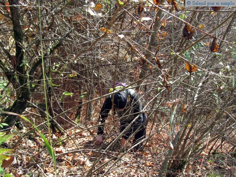 După care facem ieșirea pe dreapta din vale. Acu, eu sînt cît de cît blindat, port și bandana asta ca un prezervativ pe cap și o bluză cu mînecă lungă. Dar Călin e în tricou și cu părul liber. E criminal chiar și cînd mă gîndesc în ce tărîm al mărăcinișurilor am ajuns. Și nu era ceva local, ci peste tot. Ne smulge hainele, ne zgîrie prin haine, Călin aproape că e scalpat, îmi scot țepi de sub unghii, degete și gît.