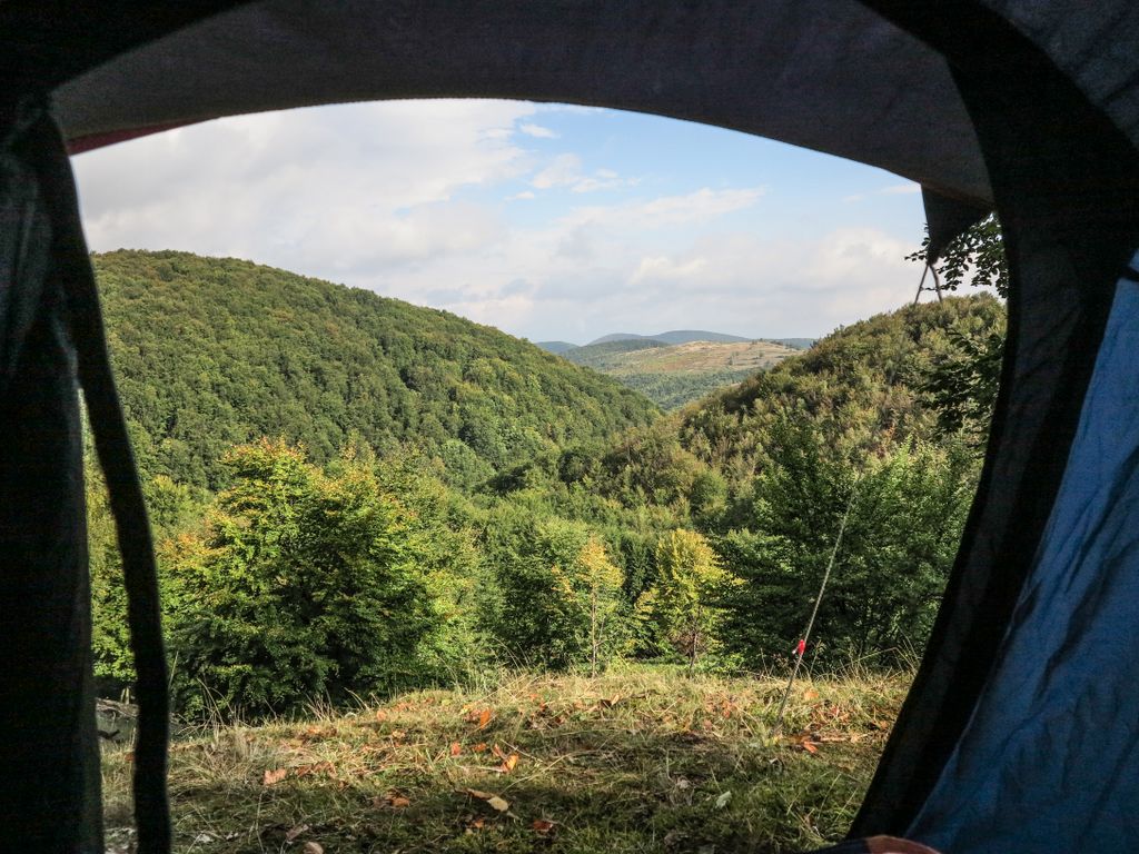 Am ales, într-un final (pentru că ne-am hotărât destul de greu ce priveliște e mai frumoasă, când ieși din cort, dimineața) locul de campare, și am ridicat tabăra.