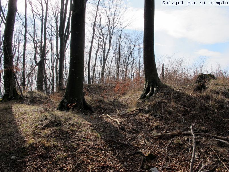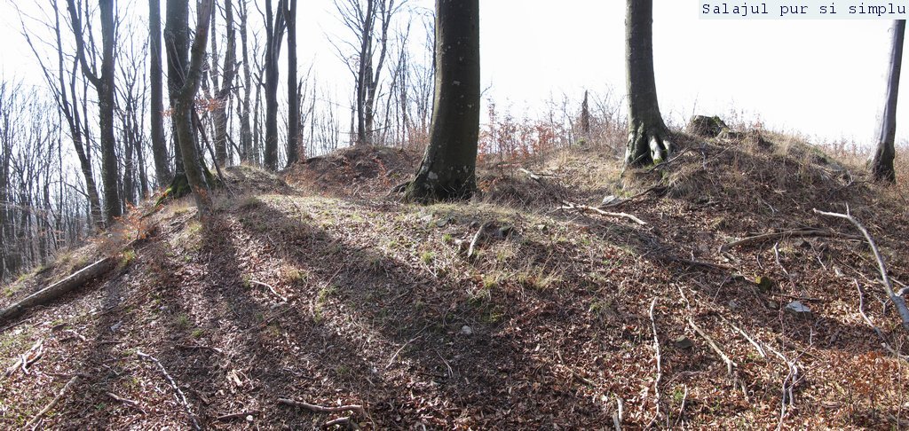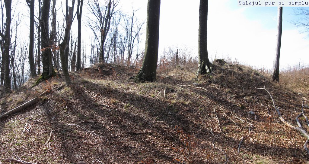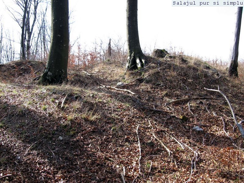 Adevărul este că eu nu mă arunc chiar așa înainte cu afirmațiile categorice, dar ceva a fost acolo, într-adevăr. O bază rotundă, cu diametrul de circa 9 metri, clar zidit cu pietre pe dinafară și dinăuntru, iar în jurul locației se poate vedea parcă urmele unui șanț de apărare. Cu puțină imaginație, înauntrul cercului zidit, puteai vedea delimitările de camere, ori ce erau pe acolo în turnul respectiv de veghe. Drumul ce urcă spre vîrf este atît de regulat, încît clar nu e vorba de ceva cărare de animale ori altceva. Plus faptul că pare pietruit.
