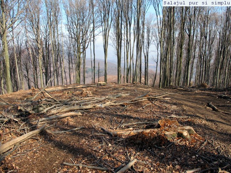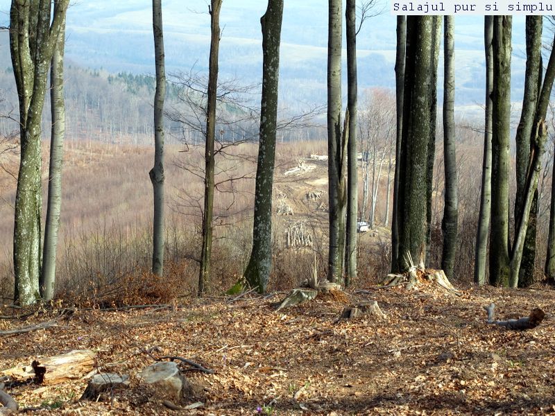 Ori în care parte ai vrea să mergi de pe culme, ești înconjurat de covoare de brîndușe și de ghiocei. E un loc neatins, cel puțin aici, sus, în apropierea turnului de veghe. Și e liniște și simți primăvara călduță cu miesmele ei nemaipomenite învăluindu-te. Pînă cînd, coborînd mai spre vale, simțurile-ți sînt iritate de explozii de zgomote de drujbă. Iar priveliștea ce se deschide în jurul tău, e ceva de infern: sute de metri de pădure exterminată, cioturi, ca niște brațe amputate ce ies din pămînt, cerșind milă. Știi senzația aia din filmele astea noi cu subiecte apocaliptice? Cum tot urci spre o culme și cînd ajung sus și poți privi spre zare, nu vezi altceva decît moarte? Exact așa m-am simțit. Și în mod ciudat, pădurea e tăiată din mijloc, iar părțile laterale sînt lăsate în pace, ca o perdea ce să ascundă nenorocirea din interior.