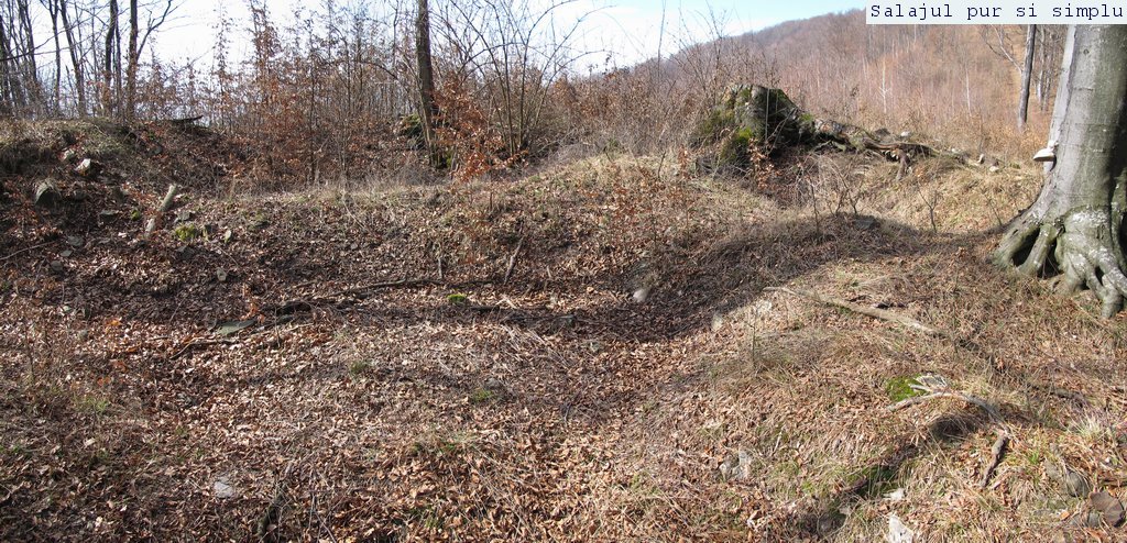 „Uite, vezi, e aproape perfect rotund, iar pe margini, pe dinafară sînt pietre clădite. Natura nu face așa ceva atît de perfect, ca pătrat ori ceva rotund. E clar, aici a fost turnul. Și, uită-te spre nord, spre vîrful Pria, se vede clar drumul ce vine exact spre turn. Iar de aici, se poate vedea apoi în jos, spre orice punct”, începe Călin să mă prelucreze.