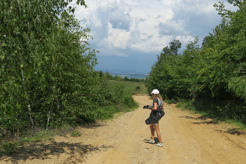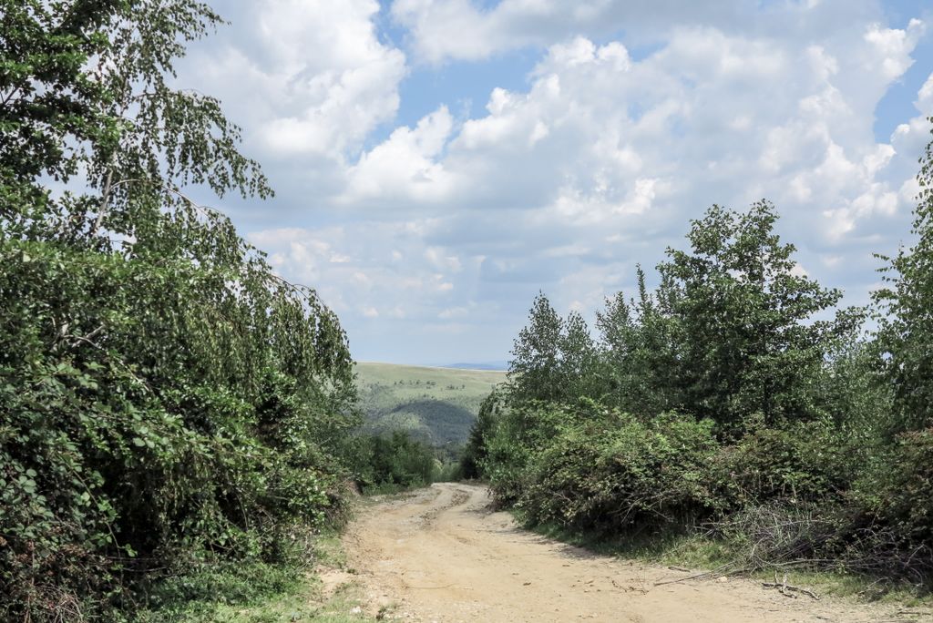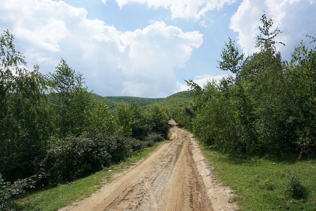 I-am mulțumit femeii și am luat-o pe unde ne-a îndrumat, adică tot roată. Am trecut peste cele două poduri, am mai luat niște curbe, parcă la nimereală, apoi, după ce am trecut de ultima casă din sat, drumul a început să urce tot mai abrupt către locul unde voiam să ajungem. Am oprit de câteva ori și am luat-o înainte, pe jos, în recunoaștere. Nu de alta, dar după aventura off-road de acum câteva zile, am zis că mai bine să știu ce ne așteaptă. Drumul, deși abrupt, și în unele locuri rupt de-a binelea, nu părea foarte greu de parcurs. Așa, uscat. Dacă vine ploaia, însă, și se face noroi, e altă poveste (așa cum aveam să aflăm de la Filip, un localnic pe care l-am întâlnit acolo).
