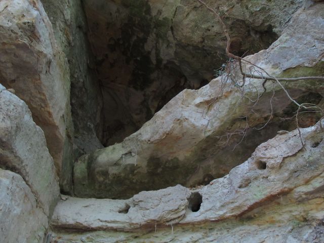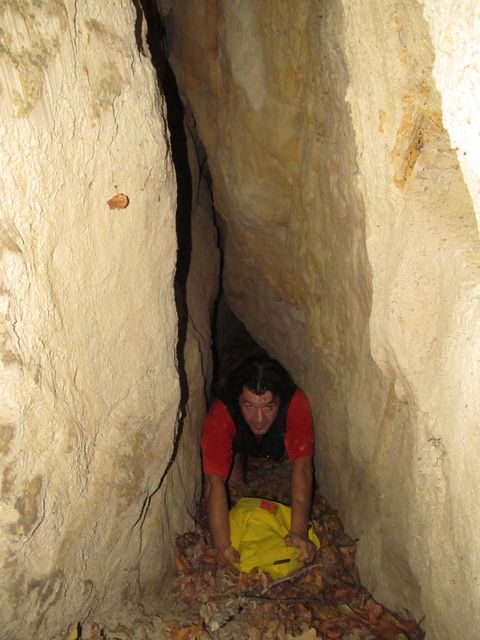 Dar, zona de aici e plină de văi şi nu durează mult, până ne alegem ruta de coborâre. Doar atât că totul se adânceşte brusc, pe o altă săritoare enormă (asupra cărei înălţimi, de vreo 40 de metri, doar de jos aveam să ne dăm seama) pe care trebuie să o ocolim. Alte urcuşuri, alte coborâri, într-o situaţie în care corpul începe deja să se elibereze de tensiunea creată de adrenalină şi tinde spre moleşeală. Dar, reuşim, în cele din urmă, să intrăm pe vale şi coborâm pe bolovani, crengi uscate, obstacole naturale, spre bază. Dăm peste cel puţin trei terase enorme, de forma unor balcoane – abriuri se numesc, formate de apele care, când vin, vin cu furie, lovindu-se de pereţii stâncoşi. Pantele pe care le-am urcat se proptesc în nişte faleze atât de mari şi maiestuoase, încât ai impresia că esti pe o cu totul altă lume. E anevoioasă coborârea, uneori e nevoie de coardă, pentru trecerea de pe o terasă de sus, pe cea de jos, alteori se sare, pur şi simplu, urmând cursul văii spre ieşire.