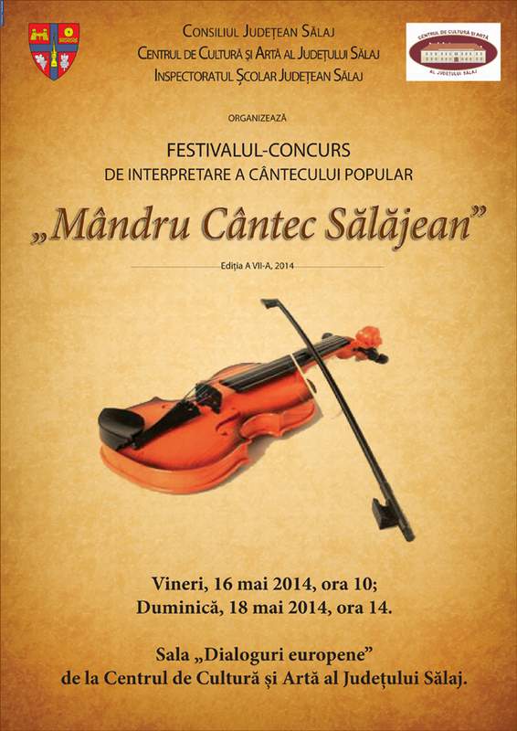 Festivalului concurs de interpretare a cântecului popular „Mândru Cântec Sălăjean”, ajuns la a VII-a ediție, va avea loc vineri, sâmbătă și duminică (16-18 mai 2014), în Sala „Dialoguri Europene”. Festivalul este organizat de Consiliul Județean Sălaj și Centrul de Cultură și Artă al Județului Sălaj (CCAJS), cu sprijinul Inspectoratului Școlar Județean Sălaj și al Clubului Rotary Zalău. La concurs s-au înscris peste 60 de concurenți, juriul fiind format din prof. Ioan Chezan (președinte), prof. Grigore Grigoruț și prof. Dorel Ciobanu. Acompaniamentul va fi asigurat de orchestra Ansamblului folcloric „Meseșul” al Centrului de Cultură și Artă al Județului Sălaj.