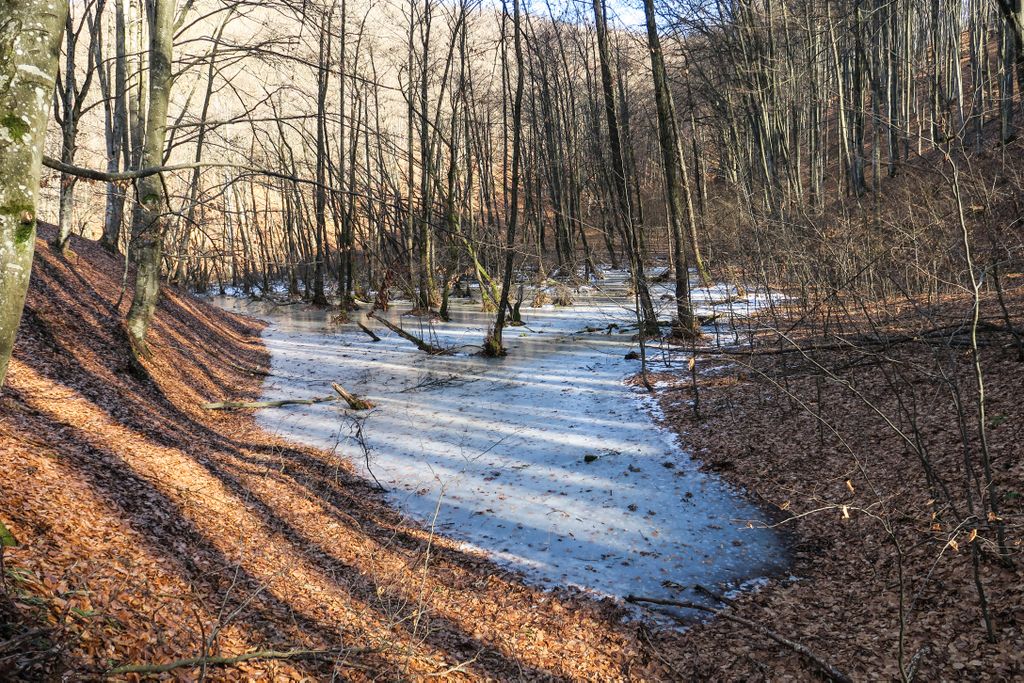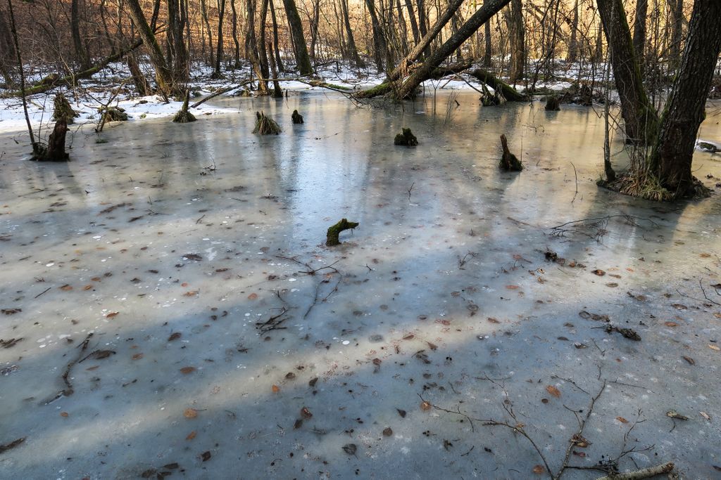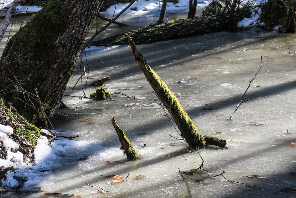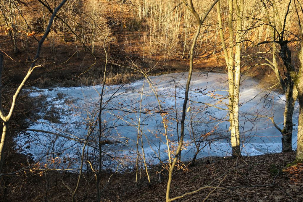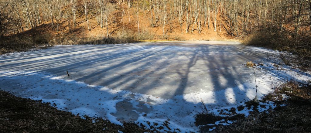 Privind la nemișcarea înghețată a tăurilor din pădure, aproape că nu-mi venea să cred că tăurile ăstea sînt aceleași cu locurile pline de verdeață, de șerpi, de insecte, de tot felul de vietăți, de plante care plutesc ori care se întind către suprafață, pe care le-am găsit aici vara, când totul pare altfel. Și nu pentru că acum, când iarna îmbracă natura cu ”hainele” create de ea, nu ar fi la fel de frumos, dar nemișcarea asta pare oarecum ireală, aici, în natură. Doar cioturile ieșind din apa înghețată, în partea dreaptă a tăului mare, sînt aceleași, în rest, pare că ai ajuns în cu totul alt loc. Însă într-un loc superb, și nu doar datorită celor două tăuri permanente, ci mai ales tăului ăsta înghețat și care vara e mai mult o băltoacă neagră, puturoasă (din cauza lemnului, a plantelor putrezind încet în mlaștina asta mică din pădure), dar care acum a prins în încleștarea de gheață trunchiuri de copaci, cioturi care se întind ca niște mâini către pădure ori crengile rupte de furtună și care așa, ca niște degete răsfirate, par că vor să te prindă și să te țină captiv, să le ții de urât.