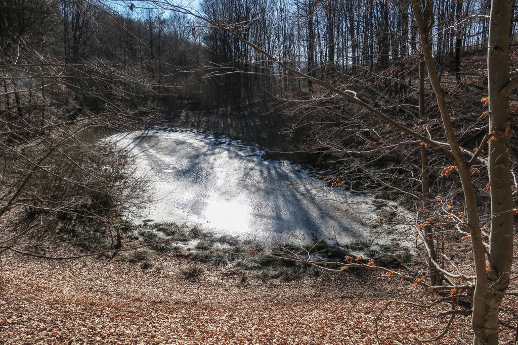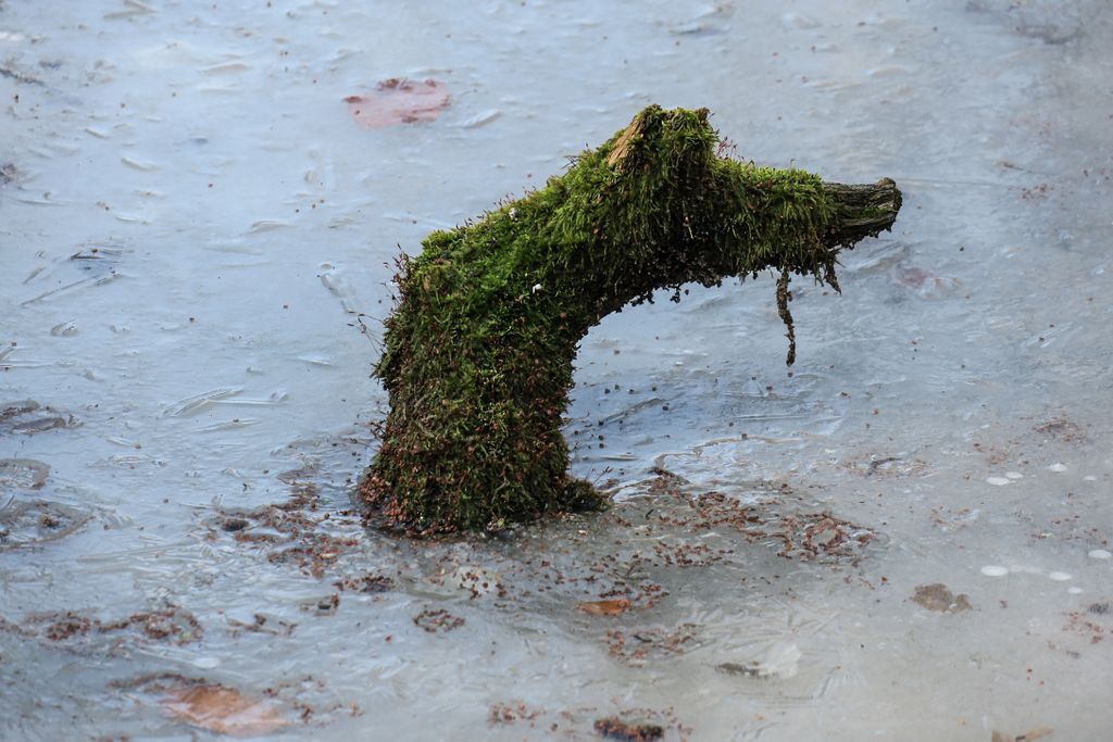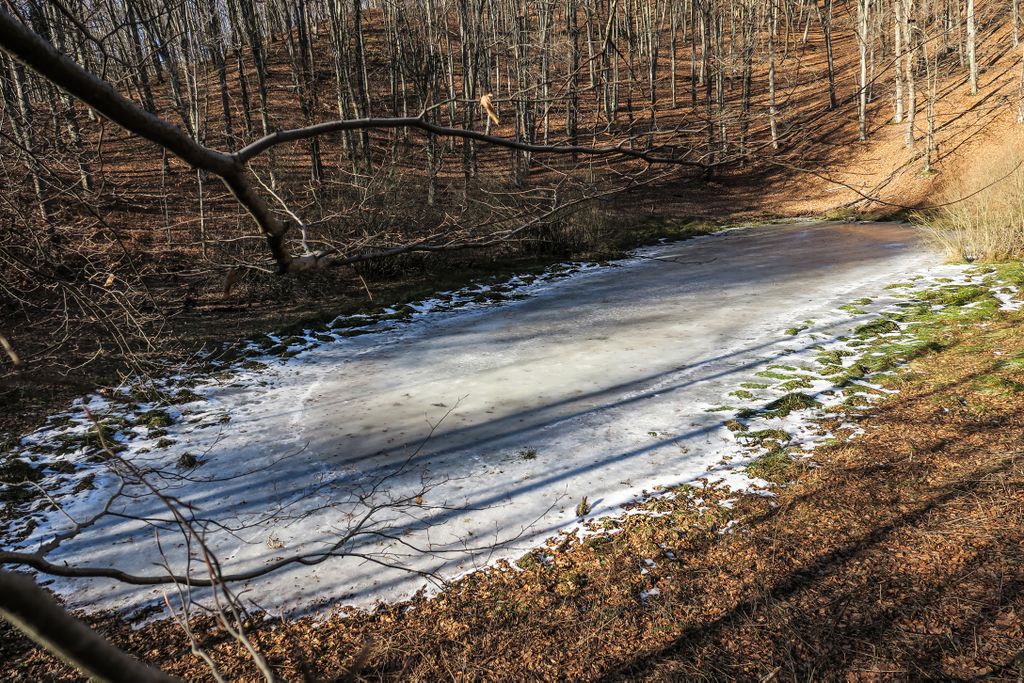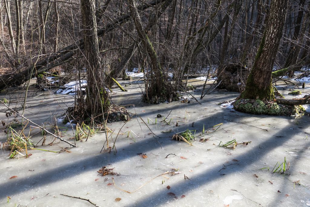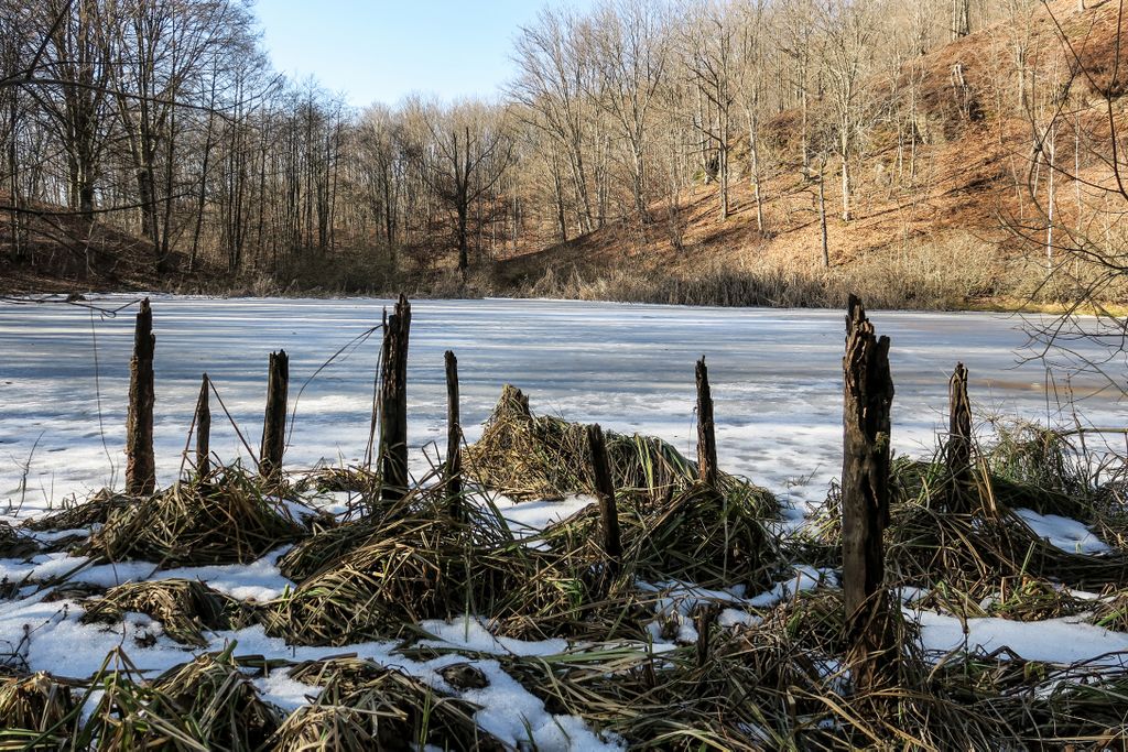Privind la nemișcarea înghețată a tăurilor din pădure, aproape că nu-mi venea să cred că tăurile ăstea sînt aceleași cu locurile pline de verdeață, de șerpi, de insecte, de tot felul de vietăți, de plante care plutesc ori care se întind către suprafață, pe care le-am găsit aici vara, când totul pare altfel. Și nu pentru că acum, când iarna îmbracă natura cu ”hainele” create de ea, nu ar fi la fel de frumos, dar nemișcarea asta pare oarecum ireală, aici, în natură. Doar cioturile ieșind din apa înghețată, în partea dreaptă a tăului mare, sînt aceleași, în rest, pare că ai ajuns în cu totul alt loc. Însă într-un loc superb, și nu doar datorită celor două tăuri permanente, ci mai ales tăului ăsta înghețat și care vara e mai mult o băltoacă neagră, puturoasă (din cauza lemnului, a plantelor putrezind încet în mlaștina asta mică din pădure), dar care acum a prins în încleștarea de gheață trunchiuri de copaci, cioturi care se întind ca niște mâini către pădure ori crengile rupte de furtună și care așa, ca niște degete răsfirate, par că vor să te prindă și să te țină captiv, să le ții de urât.