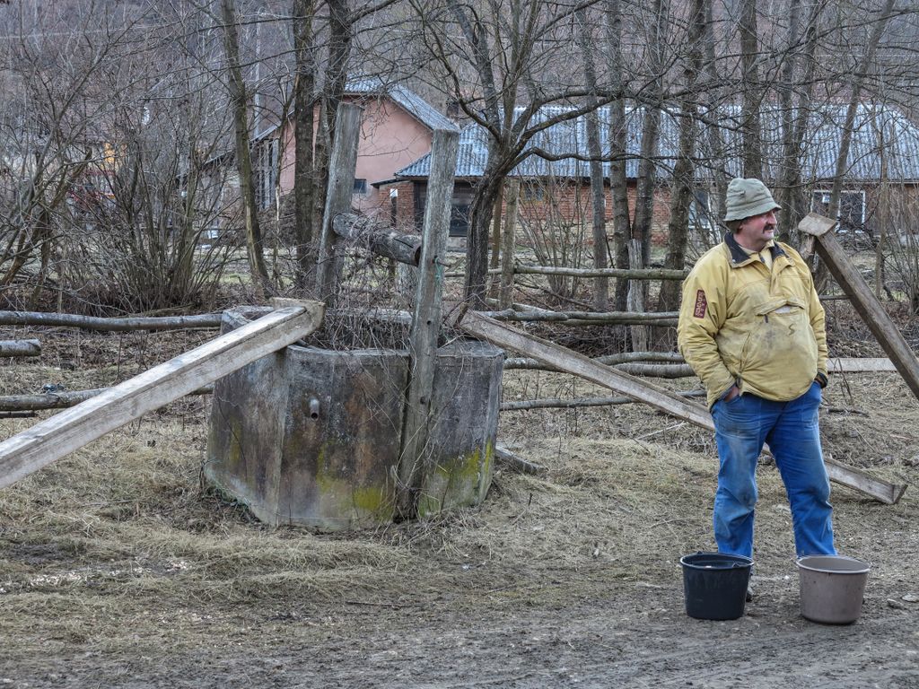 ”Api, am și io niște oi, da’ nu prea mai mere, că nu mai îi la fel, acuma-i mai greu să trăiești din asta. Că, ia, și Pițurcă știe asta, nu antrenoru’, cățălu ăla mic pă lângă care ați trecut”, spune omul, arătând înspre cățelul mic și negru, care stătea ghemuit lângă ceva plug metalic ruginit, aflat la marginea ogorului, și pe care l-am descoperit mai mult datorită ochilor. ”Că l-ați văzut, așe-i?, că am văzut că v-ați oprit la el. Acuma, mai iei un lemn ori un animal din pădure, da’ dacă o lași în pace, pădurea se repară singură, că ia cum coboară cătă sat, să tot întinde. La oameni li-i mai greu, că locuri de muncă nu-s, viața-i grea, face fiecare ce poate, da’, încet-încet, se pustiește p-aci, de n-o să mai rămână nime’ ”, continuă omul să vorbească, parcă ne-am cunoaște de când lumea.