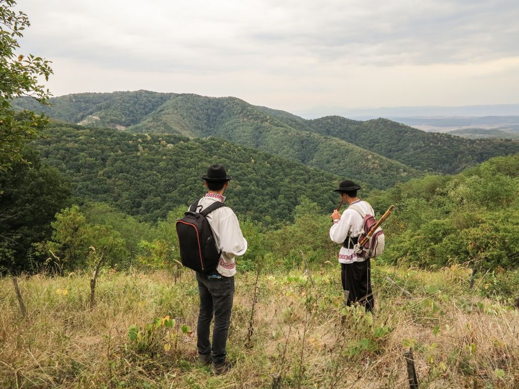 E superbă Măgura Șimleului, sălbăticia pantelor abrupte împletită cu multele drumuri forestiere ori cărări care duc în toate direcțiile fac din muntele ăsta mic un loc plin de farmec. E ca o poveste pe care o descoperi treptat, cu fiecare cărare, vale adâncă ori colț de stâncă pe care le găsești atunci când îți lași pașii să te poarte prin tărâmul ăsta care e încărcat cu magia inconfundabilă a naturii. Iar liniștea, liniștea e de-a dreptul un balsam pentru oricine intră în pădurea Măgurii, iar singurele sunete care își au locul acolo e sunetul pădurii, cu viețuitoarele ei cu tot. Ori așa am crezut, până am ajuns acolo cu Mierla Neagră, adică șimleuanii Ovidiu Gordan și Tudor Bonta, cei care vor să păstreze vie muzica tradițională românească, acea muzică arhaică din vremuri demult apuse, dar care, prin sunetele ei curate, fără urmă de ”comercial”, vorbește despre partea asta frumoasă a omului, cea legată de creație, de artă, o poveste a sufletului, până la urmă.