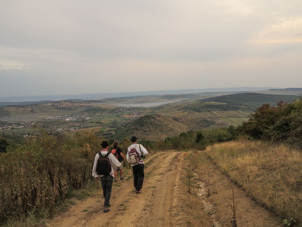 Ne-am întâlnit cu Ovidiu și Tudor, apoi, după o felie de pâine cu vinete mâncată pe post de introducere, am plecat în drumeție. Către Giurtelec, așa cum ne-a spus Ovidiu, deși, așa cum ne-am dat seama mai târziu, dacă vrei să ajungi la Giurtelec, trebuie, neapărat, să vrei să mergi la Cehei. Așa, dacă am vrut să mergem la Giurtelec, clar, am ajuns la Cehei. Nu că ar mai fi contat, o drumeție peste Măgura Șimleului, în orice parte ai lua-o, e la fel de frumoasă. Plus că, așa, la fiecare răscruce de cărări, când deja se întrezărea faptul că am luat-o în cu totul altă parte, Ovidiu venea cu compensarea culinară în așteptare, adică plăcintele făcute de mama lui, care ne așteptau acasă la întoarcere: ”No, nu știu dacă am luat-o bine, da’, lasă, că ne așteaptă mama acasă cu plăcinte proaspete”. Acuma, nu prea avea importanță că nu o să ajungem la Giurtelec (care, așa cum am repetat-o de multe ori atunci și acolo, probabil că e doar o legendă, la fel ca Atlantida), dar plăcintele proaspete care ne așteptau la întoarcere, asta da, nu ai cum să nu te gândești la deliciul ăsta culinar. Mulțumim, doamna Gordan, plăcintele au fost delicioase!