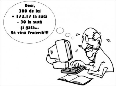 Şi-o fost, de n-ar mai fi, da’ problema-i că încă mai e. Black Friday. Adică, mai pe româneşte, vinerea a’ neagră . Şi românu’ care n-a mai dat prin magazine de ceva vreme, auzind în jurul lui că “Tuloaie, Doamne, promooooooooţie!!!!”, dă fuga cât îl ţin picioarele şi cumpără te miri ce, apoi, cu capu’ plecat (deprindere iobăgească) aruncă cu mulţamuri şi sărutmâini încolo şi-ncoace, cu paporniţele pline pe post de moaşte. Acuma, mai e şi ălalalt român, care mai umblă prin magazine şi care mai ştie cât era halatu’ înainte şi, pe deasupra, îşi mai aduce aminte de aritmetica din clasele primare. Şi ăsta, când intră în magazinu’ cu promoţia şi vede că un aparat de fotografiat costă 669 lei, iar înainte de “Tuloaie, Doamne, promooooooooţie!!!!” era 519 lei, închide gura, ca să nu scape scuipatu’ din gură hăpt în capu’ angajaţilor, că ăia săracii fac ce li se spune, şi se uită după şefi, să le de-a un cap în gură, aşa, în loc de mulţam. Da’ cum şefu se face că plouă în altă parte, capu-n gură se transformă într-o trimitere directă la originile anatomice „… şi cine io făcut”. Apoi, românu’ iese afară cu mâinile în buzunar, nu de alta, da’ scuipatu’ stă deja de ceva vreme în gură şi deja îl auzi strigând “Free, Willy!”. Până la urmă, între mulţamuri, sărutmâini şi porniri de cap în gură, ce rămâne?