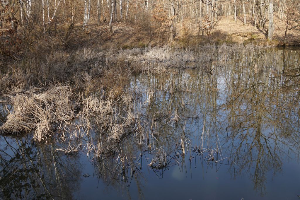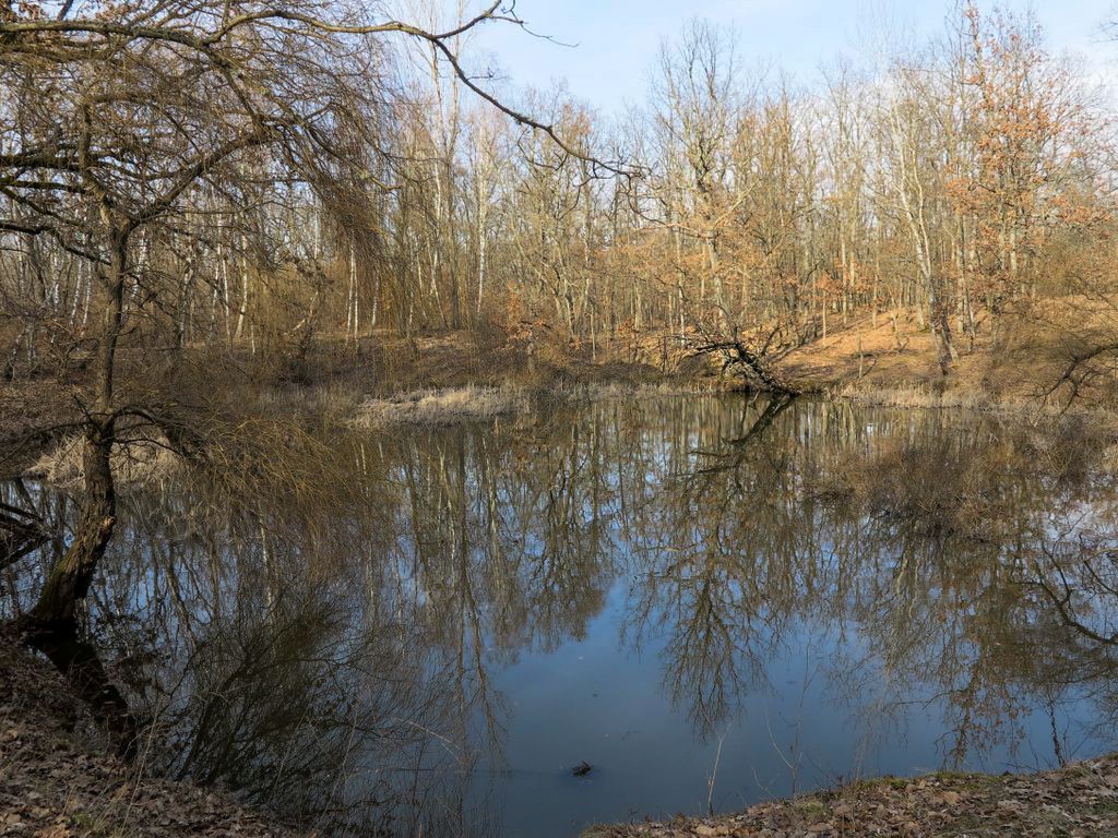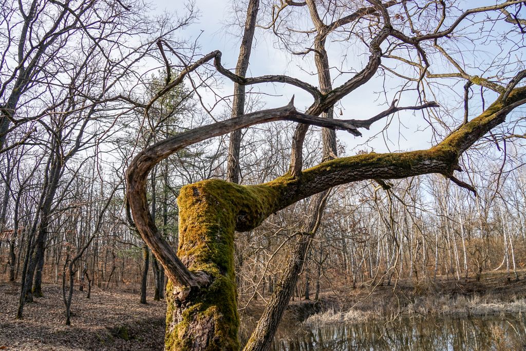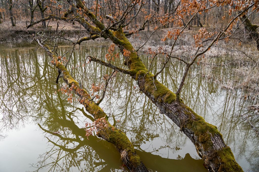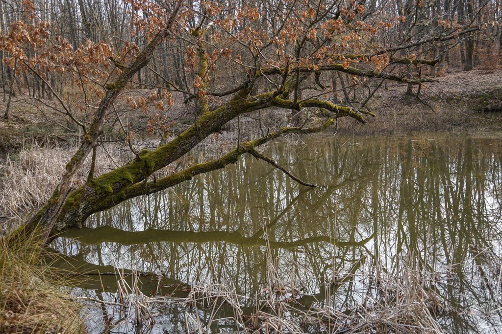 Nu e foarte mare, și probabil nici foarte adânc, dar crengile contorsionate, trunchiul acoperit de mușchi al copacului care stă aplecat foarte aproape de ochiul de apă, movilele verzi de iarbă ca niște insule minuscule părând că plutesc la suprafața apei, scoarța albă a mestecenilor ce străjuiesc un mal al tăului, vegetația uscată ce se ivește din tău… Toate astea creează un fel de magie, o poveste care atunci se scrie. Iar tu, cel care ajungi acolo, nu poți decât să te bucuri că faci parte din poveste. Pentru atât cât e să fie.