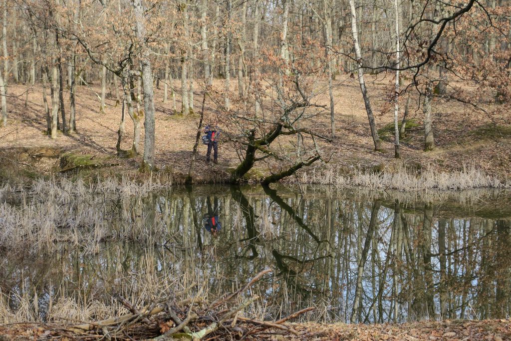 Am urmat gardul, de-a lungul lui, luându-ne după semne. Adică niște bucăți de lemn prinse, nu știu cum, în gard, trecând dintr-o parte a lui în alta, fiecare semn de lemn fiind (evident, doar prin prisma imaginației) un indiciu care să ne ajute să descoperim pădurea. Iar indiciile ăstea ne-au dus la tăul din mijlocul pădurii. Am trecut dincolo de gard și ne-am oprit, pentru o vreme, la malul lui, ascultând și privind natura, bucurându-ne de fiecare semn de viață: foșnetul pașilor căprioarelor, zgomotul sacadat făcut de ciocănitoarele în căutare de hrană, fălfăitul aripilor unei păsări roșcate, sfioase, care s-a așezat pe o creangă, pe celălalt mal al tăului, acolo de unde ne privea, probabil la fel de curioasă ca noi, oamenii ajunși acolo, la tăul din mijlocul pădurii.