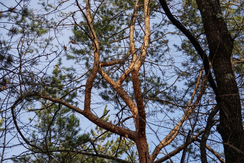 Tăul ăsta l-am văzut mergând de-a lungul gardului din mijlocul pădurii, după ce am trecut prin culoarul creat de drumul forestier, și care nu are cum să nu te îndemne să-l urmezi, să vezi unde duce. Mai ales că pinii verzi, luminați de soare și mișcați de vânt par că îți vorbesc. De fapt, chiar vorbesc, atâta tot că încă n-am reușit să traducem în cuvinte poveștile pădurii.
