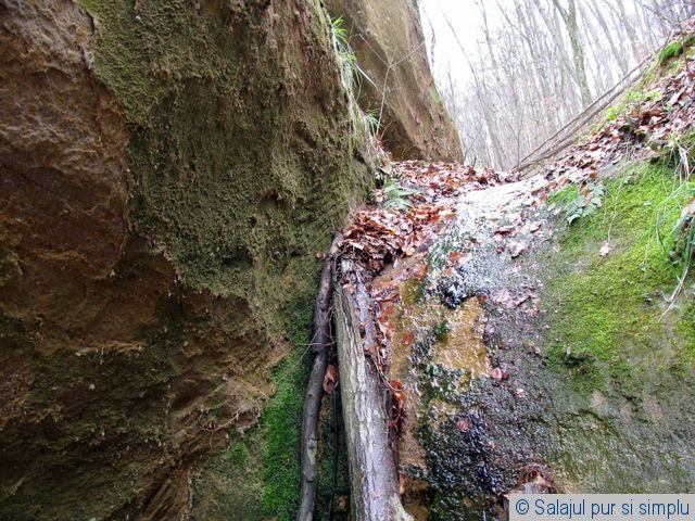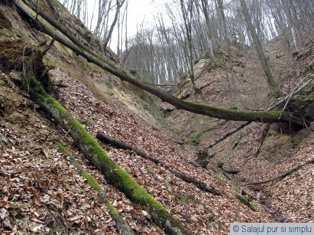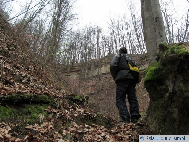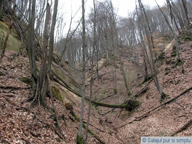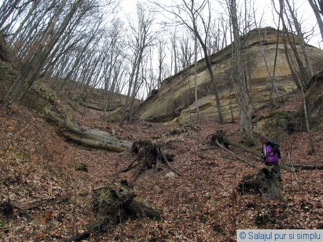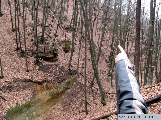 Din creastă nu se vede nimic deosebit, doar pădurea nesfîrșită. Așa că continuăm să cartografiem zona, într-un mers agale. Undeva, sub noi, se deschide o altă coamă care, în depărtare, se pare că se termină într-o săritoare. Călin decide să inspecteze zona respectivă, în timp ce eu hotăresc să cobor coama, înspre ceea ce se dovedește a fi o rîpă adîncă, ce ascunde pericole la tot pasul. Ne reîntilnim peste vreo jumătate de oră, într-adevăr, Călin a dat peste o săritoare și ne zicem că vom ajunge la ea coborînd în rîpă, pe care, urmînd-o, vom ajunge să înconjurăm săritoarea respectivă, spre baza ei.