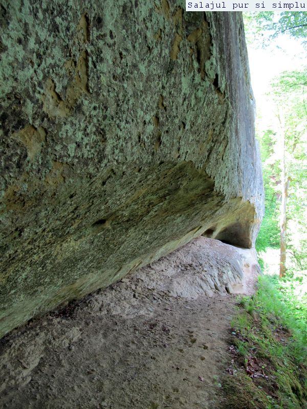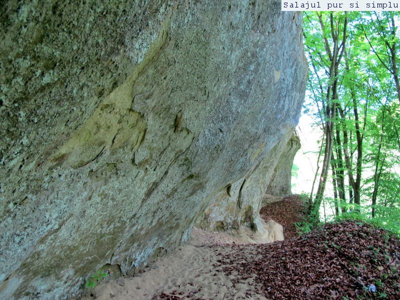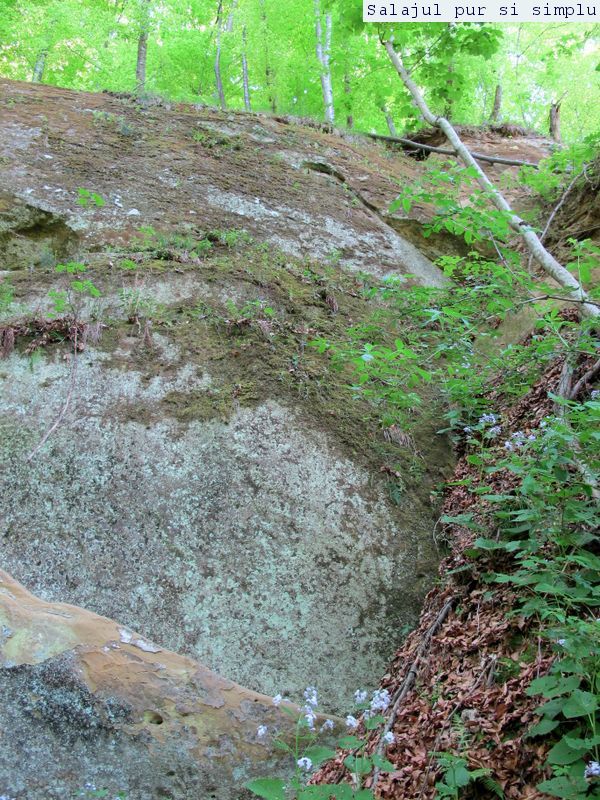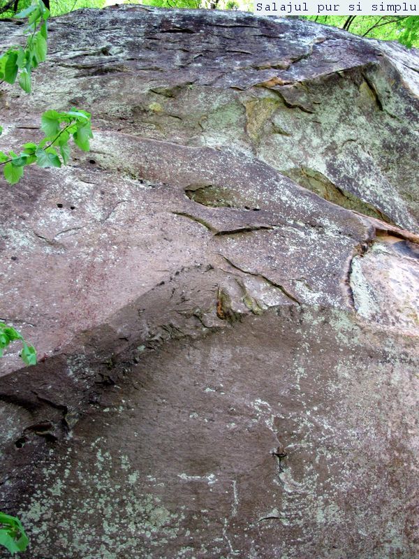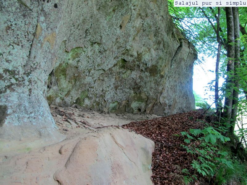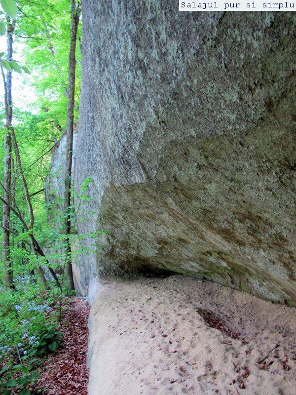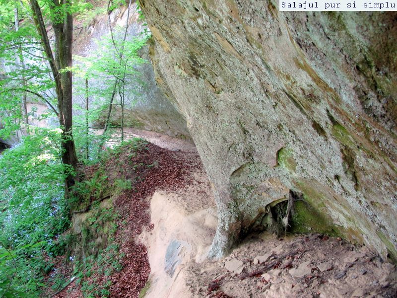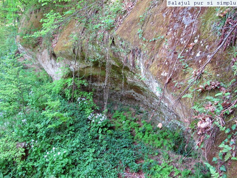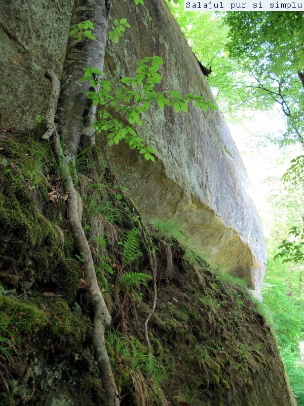 După ce-am făcut inventarul “stricăciunilor”, așezat sub bolta abriului, am coborât la baza stâncilor, unde, printr-un câmp de flori și urzici, numai bune să mă scape de reumatism pentru vreo 50 de ani, am traversat poiana, apoi am luat-o, din nou, către stânci. În fața mea, peretele. Și ce perete! Vreo 25 de metri înălțime, compact și lung, ca un piton uriaș de piatră, pe lângă care am mers încet, zidul care părea că se apleacă peste mine aproape copleșindu-mă. Am dat peste încă un abri, in interiorul căruia nisipul fin, gălbui, rezultat din eroziunea gresiilor, aproape că îți dădea impresia că ești pe plajă, și am umblat ca un copil cu bocancii prin nisip, imprimându-mi urmele acolo… Am lăsat plaja abriului și mi-am continuat drumul prin scobitura uriașă din stâncă, lungă de vreo 30 de metri, am trecut peste o brână îngustă, apoi drumul a devenit prea periculos ca să mai pot merge mai departe în siguranță. Brăna îngustă de 10 centimetri lăsa să se vadă dedesubt golul imens, care, în caz că picai, nu-ți dădea nici o șansă. Și, după pățania de dinainte, mi-am zis că e mai bine să cobor de acolo, chiar dacă exuberanța îmi dădea iar târcoale, așa că am coborât la baza peretelui, copleșit, din nou, de imensitatea lui, de parcă ziceai că acum-acum se prăvale peste mine, mai ales că stăteam cu capul dat pe spate, încercând să-l cuprind tot cu privirea. Am urcat iar, mi-am umplut bocancii cu nisipul fin al scobiturii lungi din stâncă, iar am coborât, am mai urcat o dată, apoi, într-un final, am ajuns la capătul zidului. Și acum, încotro?