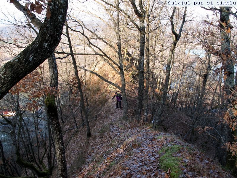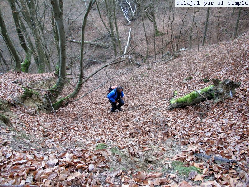 Coborîm din mașină chiar după ce am ieșit din micul sătuc – doar vreo 80 de suflete trăiesc în acest capăt de linie. Cetățuia se ridică chiar deasupra noastră, amenințătoare, și deslușim crucea de fier de pe acoperișul ei. Bate un vînt aici, rece, ca pe fostele coridoare comuniste, iarna. În doar cîteva minute s-a strecurat sub hainele noastre și ne spunem că musai să ne mișcăm repede, altfel, ne pietrificăm și noi aici. La Cetățuie se urcă dinspre lateral. Căutăm și măsurăm din priviri un posibil traseu de urcare, după ce ne-am afundat deja un pic în pădure și ne dăm seama imediat de cît de periculoasă va fi ascensiunea. Bruma de peste noapte a acoperit frunzișul gros de jos cu miliarde de ace înghețate, iar solul e bocnă. Deci, totul s-a transformat în tobogan. O iau eu înainte, dar oricît ai căuta, tot la piept trebuie luată panta. Cu atît mai mult cu cît stau mai sigur pe picioare, ajutat de bocancii speciali cu talpă Vibram, în timp ce Călin alunecă la fiecare pas cu bocancii lui de vară. Plus că el a avut și niște probleme de testicolis – no bine, el zice că de torticolis, dar nu știe el atîta medicină alternativă ca mine, și e cam țeapăn.