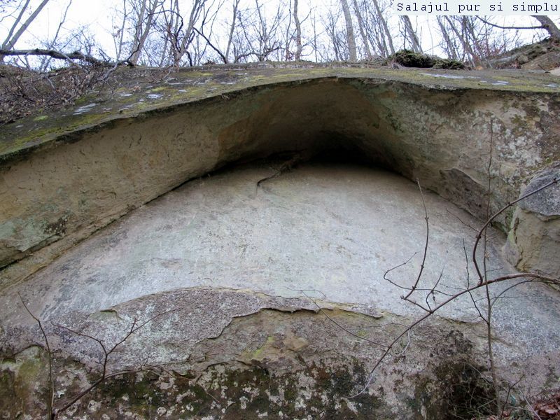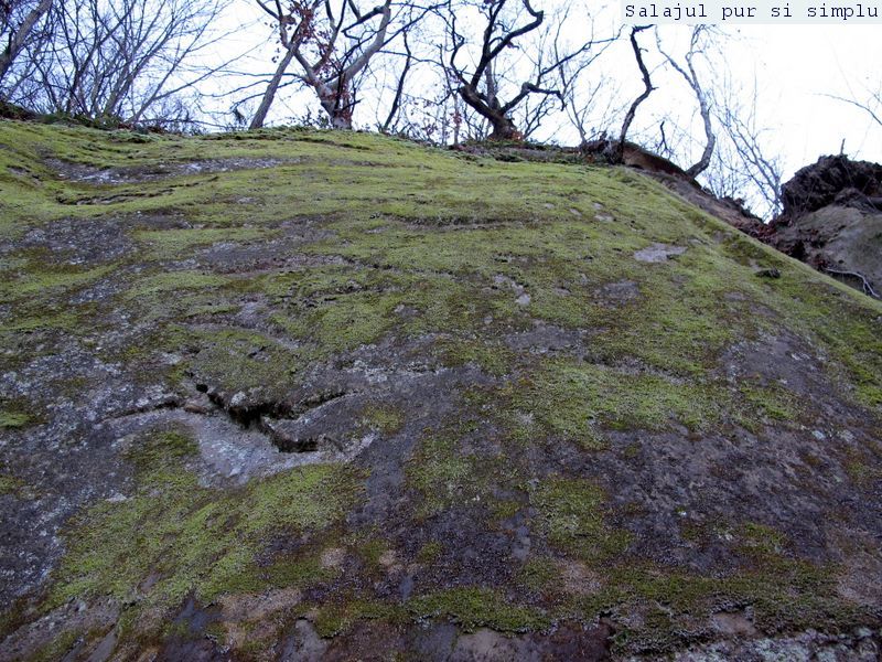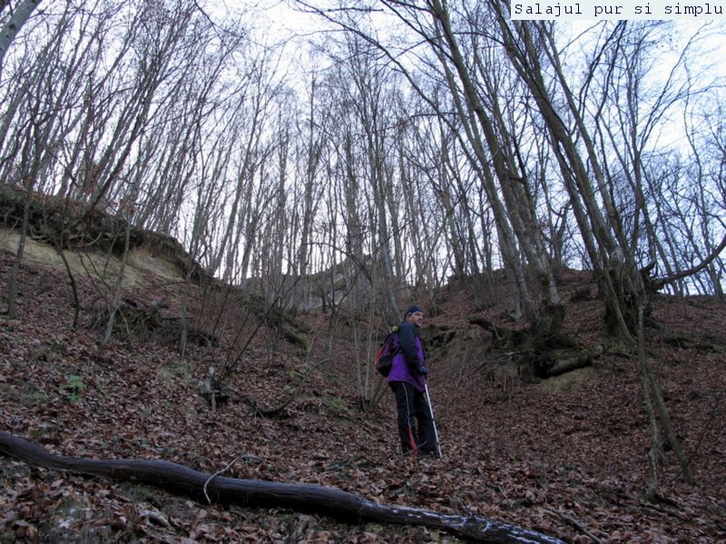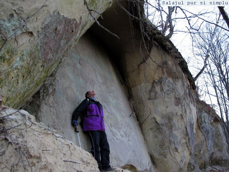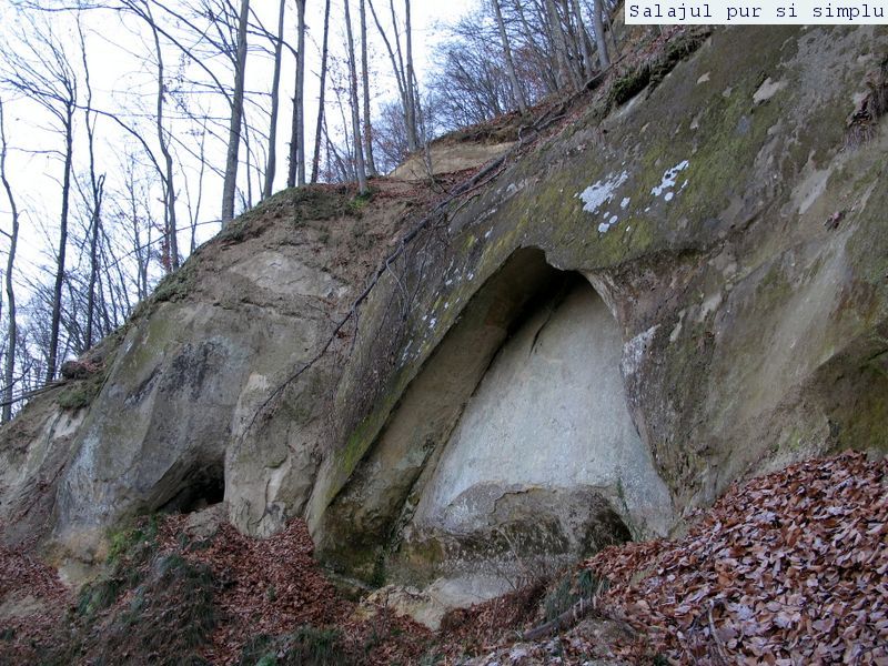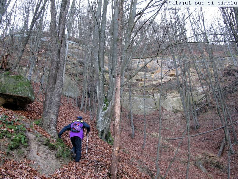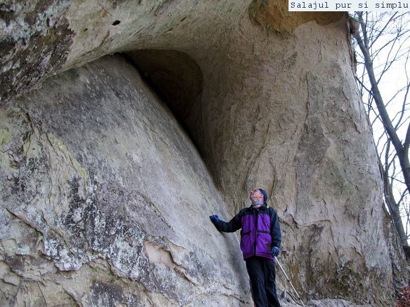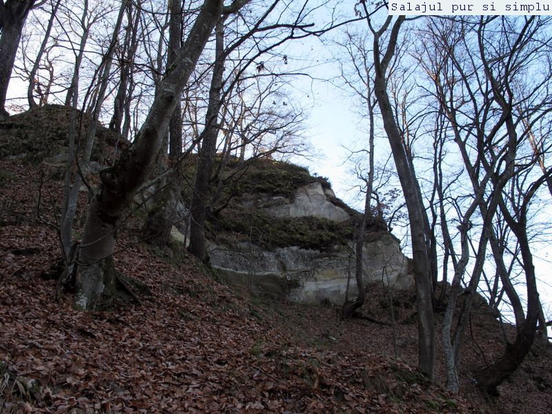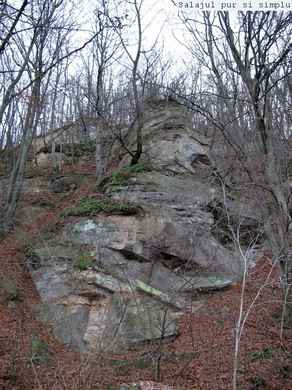 Doar la cîteva sute de metri de stană, vegetația uscată de acum ne lasă să aruncăm o privire spre interiorul pădurii. Și ne lasă uimiți. Șirul de stînci începe cu un turn înalt și semeț, de zici că-i un soldat ce stă de strajă. Urcăm pe lîngă el, descoperind deasupra sa o întindere masivă de stînci, ce curge paralel cu drumul de jos, cale de cîteva sute de metri. E foarte abrupt și alunecos. E greu de ajuns în apropierea zidului și și mai greu de mers pe lîngă el. Dar se poate. Și dăm peste cel puțin patru arcade masive. Știi cum sînt? Ca niște guri de tunel, înalte de vreo 5 metri, intrarea lor fiind parcă acoperită de un văl de piatră. Îmi vine să împing „ușița” aia masivă să văd dacă nu se deschide înapoia ei zidul. Nu se deschide.