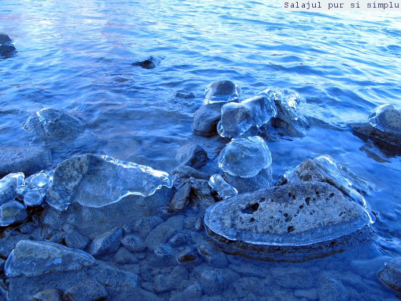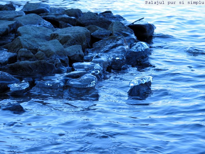 Pietrele alea de pe margine, acoperite cu un strat de gheață, ce se întinde ca un văl pînă la suprafața apei, sclipind ca niște licurici în plină zi, sînt parcă de pe altă lume.