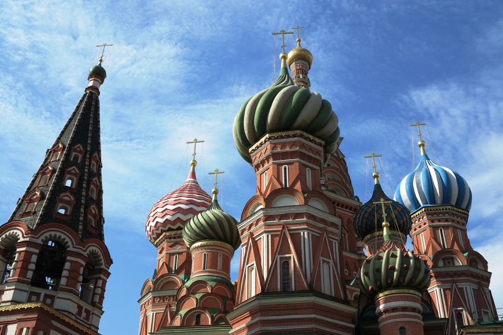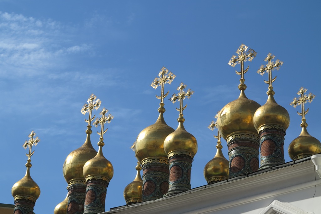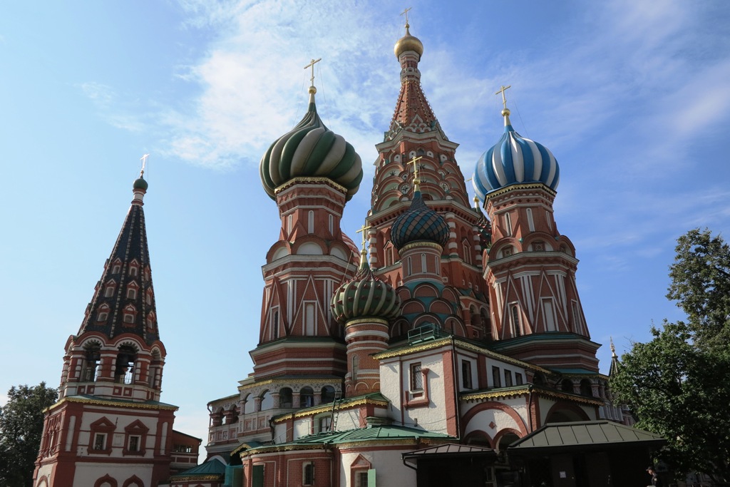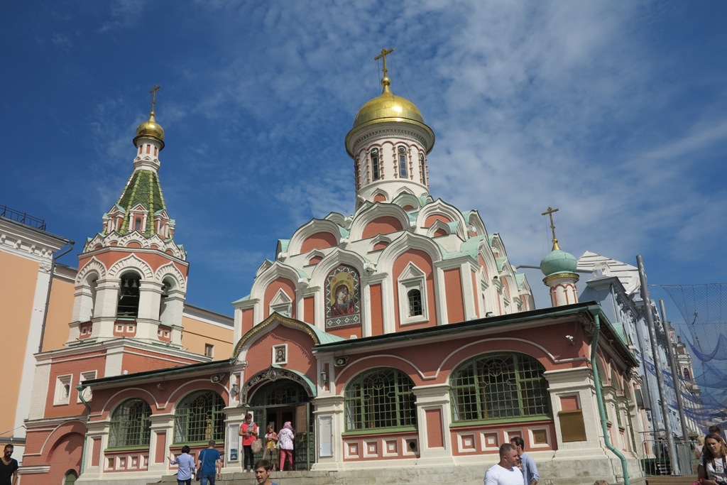 La biserica cu bulbi de ceapă din Piața Roșie, Catedrala Sf. Vasile, am ajuns a doua zi dimineața și ne-a făcut pielea de găină, când am dat cu ochii de ea, atunci când am trecut colțul după controlul cu de-amănuntul la intrarea în piață. O văzuserăm cu toții în fotografii de atâtea ori și cu toate astea am rămas cu gurile oau, la vederea culorilor și a detaliilor, a liniilor ce dau profunzime și unicitate bulbilor pe care Napoleon i-a găsit atât de fascinanți încât a vrut să ducă biserica cu el la Paris și pentru că nu avea mijloacele necesare a hotărât să o incendieze, biserica fiind salvată doar de ploaia care s-a abătut deodată asupra ei. Liniile drepte, curbe și frânte ale construcției, dar mai ales armonia culorilor și profunzimea care dau forma bulbilor îți amintesc de casa de turtă dulce din basmul cu Hansel și Gretel, așa că ne-am tot învârtit în jurul ei o vreme cu gândul la Ivan cel Groaznic, cel care a dispus construcția ei, dar mai ales la cei doi arhitecți care au gândit la vremea respectivă ceva care nu seamănă cu nimic altceva și în care se regăsesc, totodată, atât de bine elemente tradiționale specific rusești. Într-un final am intrat, iar interiorul ne-a surprins pentru că probabil ne așteptam la bolți înalte și încăperi largi și am dat peste spații relativ mici cu bolți joase pictate absolut minunat în acuarelă viu colorată cu motive artistice îndeosebi florale și geometrice. Interiorul Catedralei Sfântul Vasile este până la urmă un fel de labirint de galerii ce fac legatura între capele și diferitele nivele ale acestora. Sfântul Vasile din Moscova, ale carui Moaște sunt atât de prețuite de întregul popor rus le-am văzut într-o raclă de argint aflată la primul nivel al clădirii.