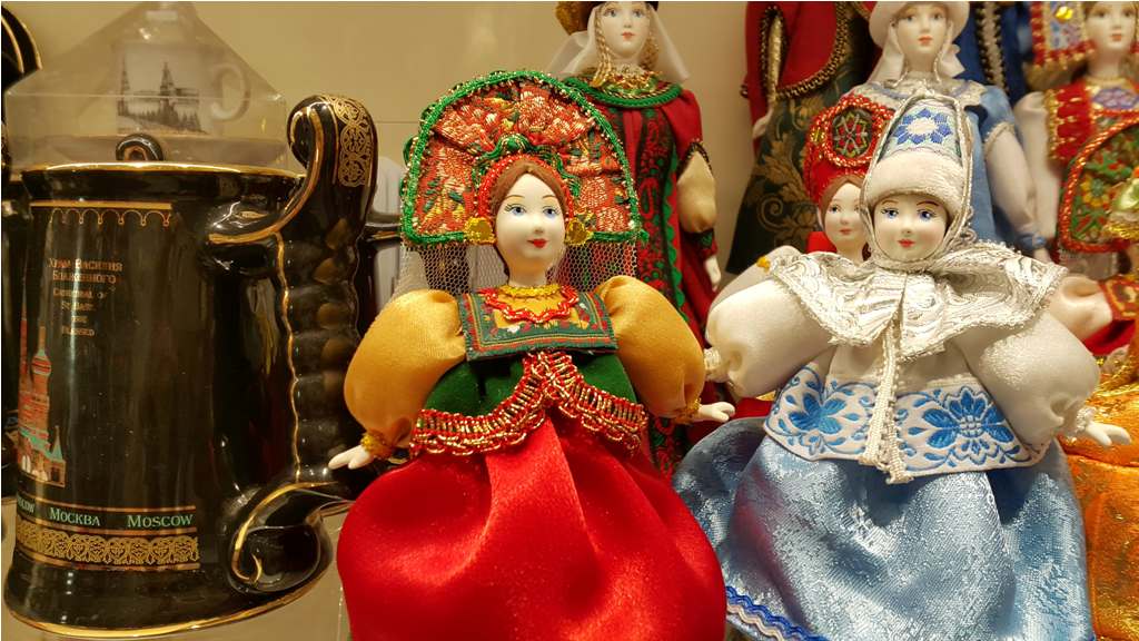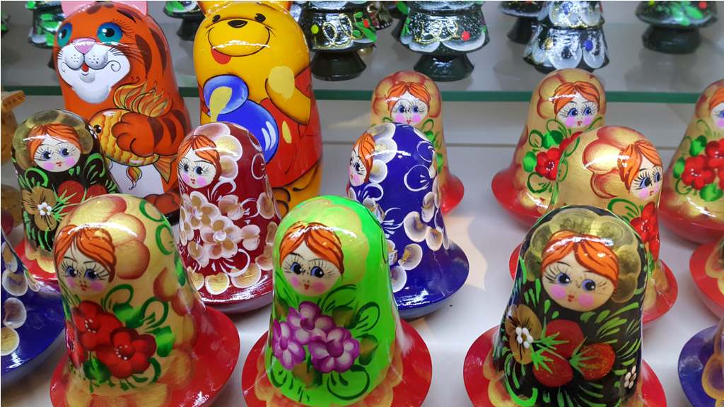 Arbat este strada pietonală plină cu magazine cu suveniruri unde am petrecut o după masă întreagă căscând ochii la matrioșka, la căciulile de blană rusești, la cutiile muzicale cu melodii rusești, la podoabe și câte și mai câte. Toate acestea le-am regăsit apoi în Piața Kremlin la prețuri mult mai avantajoase. Pentru mulţi turişti, „Matrioşka“ reprezintă un suvenir de neratat când ajung în Rusia dar puţini dintre ei ştiu că această păpuşă îşi are originile în Japonia înainte de a deveni un simbol al Rusiei. Înfăţişând ţărănci joviale în epoca ţaristă, muncitori şi cosmonauţi în perioada sovietică, mai nou se vinde în chip de Lenin, Stalin sau Vladimir Putin iar în fiecare casă de ruşi găseşti cel puţin o Matrioşkă.