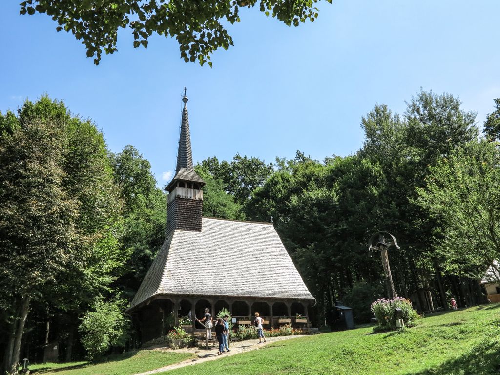 Şi dacă Sibiul e cât se poate de pitoresc noaptea, ziua trebuie neapărat să vezi Dumbrava Sibiului ce găzduieşte pe aproape 100 de hectare Muzeul Civilizaţiei Populare Tradiţionale Astra, un muzeu în aer liber cu zeci de gospodării, case vechi româneşti, mori de vânt, mori plutitoare, uleiniţe, stâne, hanuri, şi trei bisericuţe din lemn, din care una, funcţională, cu slujba ce se aude în surdină, e tocmai din Sălaj, din satul Bezded, de la jumătatea secoului al XVIII-lea, mereu înconjurată de vizitatori, mereu vie, mereu înconjurată de un miros subtil de tămâie, ca o bijuterie autentică.
