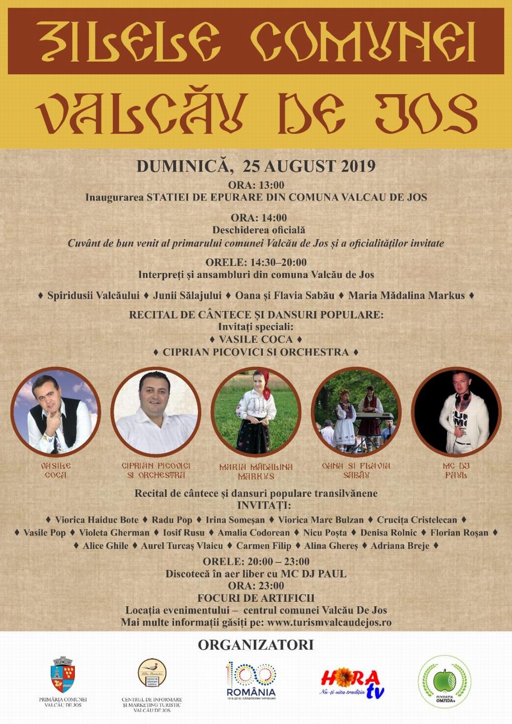 Primăria Comunei Valcău de Jos și Centrul de Informare și Marketing Turistic Valcău de Jos invită sălăjenii, duminică, 25 august 2019, în centrul comunei, Zilele Comunei Valcău de Jos.