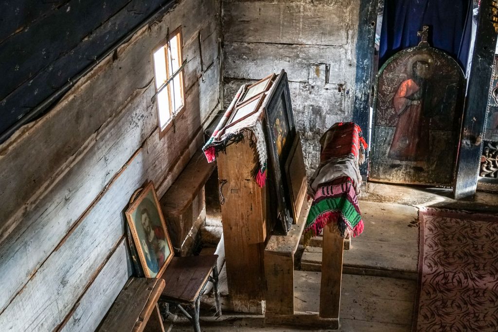 A fost primul lucru pe care l-am observat, atunci când am ajuns în dreptul bisericii. Și în imaginea de ansamblu, cea comună lăcașurilor de cult din lemn, scaunul ăsta a fost acel element de legătură dintre om, lemnul sfânt al bisericii și ideea de divinitate. Un scaun pe care tu, călătorul, să te așezi și să asculți în tihnă povestea locului, îmbinată odată cu bârnele de lemn, acum două sute și ceva de ani. E ca și cum Dumnezeu însuși ar fi așezat acolo scaunul ăsta, un fel de a-ți spune: ”Hai, omule, să stăm puțin la povești, să-ți spun despre viața mea, să-mi spui despre viața ta, să fim acum, aici, unul pentru altul”.