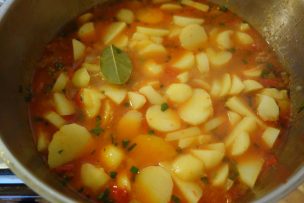 Noi aveam de-aieste di la boldu li Miki uări a li Lazar, ierau die tăitie, pițule nu pe ierau. Amu în zămuca aiasta n-ar hi rău să pui on păhăruț die poprică măcinată die toamna și pusă-n borcan, dunstulită să steie păstă iarnă. Die ai pui, die nu ai, ar trăbui să ai, țucu-tie! Punie și on colb die poprică roșie măcinată, di-aceie dulce, coată die sare și mai ales die thiperi, thiperiu să-l sâmțăști binie, binie. Amu le-o vinit rându și la coadile die ceapă și die ai, tăiete mânânțăl. Cătăcând goațăle or hi hierte, nu le zdrobdi! Le pui și pă iele în laboș, le amesteci cătingan cu tăiticele și tomnești beșteleu cu apa în care-o hiert goațăle. Îl faci cum îț place, mai zămos uări mai scăzut. Vez tu, di-aceie ț-am zâs io să pui goațăle la hiert detilindi, hierb tăitie mai repede și le poț urmări mai binie să nu să zdrobască, să nu iasă tăitie tocozâtie. Ș-api cu apa ceie poț tomni zama după cum ț-am zâs. Musai să pui ș-on pumn die petrinjei!