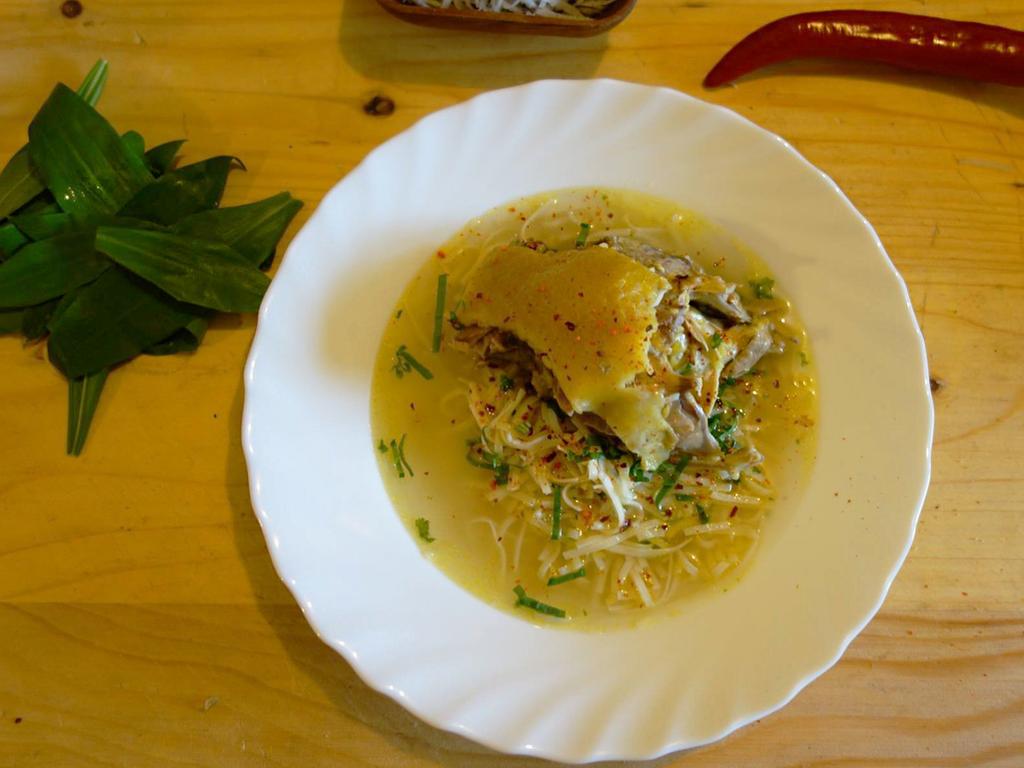 „Taie puiu dărăburi potriditie, da cât poț nu rupe cioantile, lasă tăt dărabu cu ciontu lui întreg. Așe, punie detilindi coșu thieptuli, curu, grumazu și labele puiuli. Din aieste poț face o țârucă die zupă că bună a hi, așe să ...