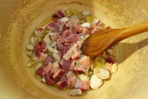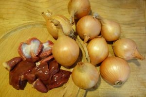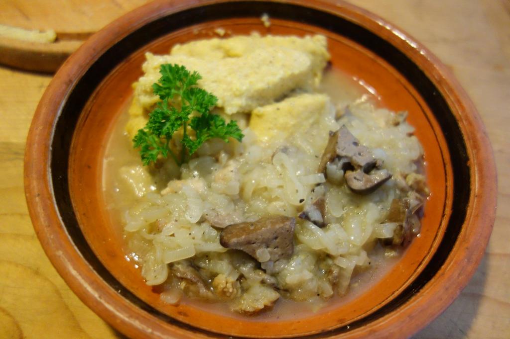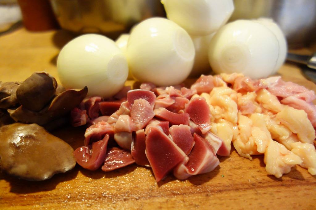 ”Când ai bonțălit puiu, ai pus dietilindi măruntaiele. Le corățăști, le speli binie cu apă rece. Ai die grije când corățăști maiu să tai și să țâpti hierea, cu asta începti! Cu mare grije să n-o spargi, c-api nu-i mai bun maiu die nimnică, tătătăt să amăreștie! Io-ț spui drept, die nu-s tare sorgoșetă opăresc maiu și nu-l pui la fript di-la-nceput că să-mprăștie pân tocană și tăt o tulbură. Așe să faci și tu. Pă lângă mai ai acole inima, rânza și măiuțu cel mnic.