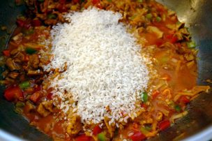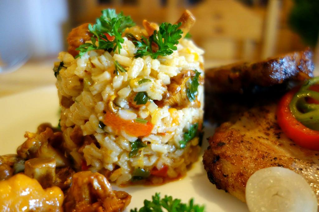 Cam cătă când crez că s-o muiet și ciupercile, pui rișcașu. O finjie die rișcaș și tri finjii die apă, s-o ai pregătită caldă, apa. Odată cu rișcașu punie și on hir, doauă, die ceapă verdie, c-amu ieste, o tai roatie, roatie, nu tare mari. Amesteci și când începe a hierbe mâncarea faci focu cât poț die încet, pui fidieu și lași așe, nu mai umbli în laboș on sfert die ceas. Pregătești estimp doi pumni die petrinjei tăieți mânânțăl. Coată de vezi să hie hiert rișcașu, nu mai amesteca, că-l zdrobdiești, numai punie petrinjeii pă diasupra, punie iar fidieu, iei di pă foc și lași rișcașu să să hodinească. Amu că-i gata îl poț mânca așe cum îi. Die vrei, frijeț on flechen, doauă. Doamnie dă-ț sănătatie!
