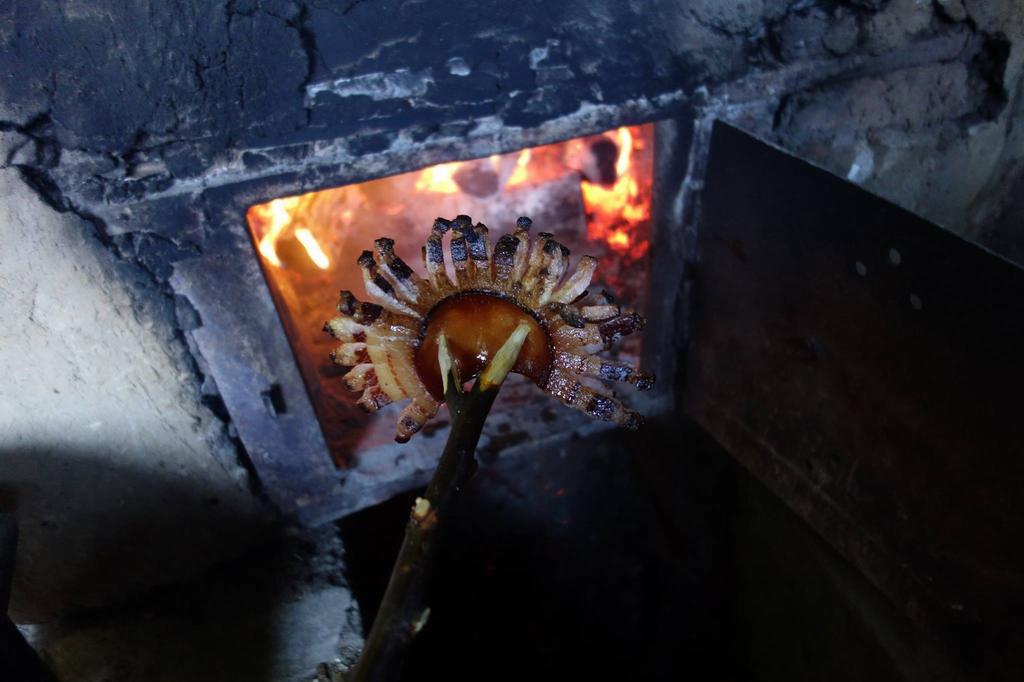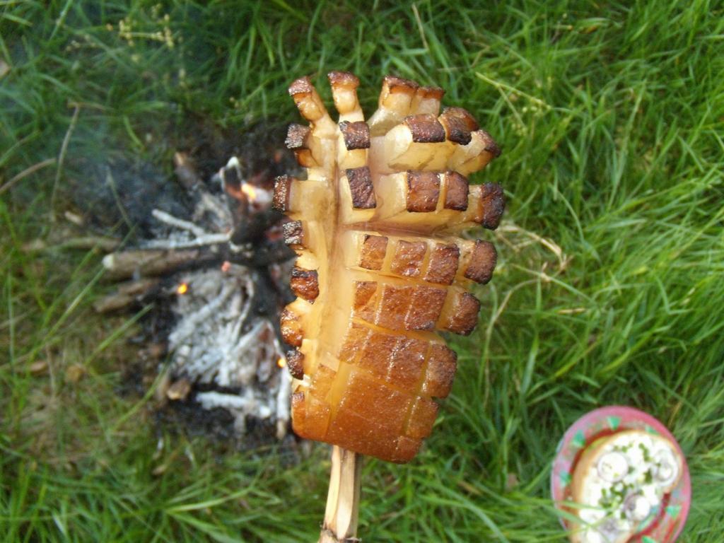 Amu, dacă focu-i gata, lasă-l să facă jar și țânie clisa la dogoarea lui, nu la para focului, că tăt-tăt-tăt o afumni s-api n-ai făcut nimnica! Așe, așe, numai cătă jar…când vezi că-ncepe a pticura traj-o di cătă foc și lasă unsoarea să curgă păstă scrijaua cu brânză și ceapă. Și tăt așe până-i băga die samă că s-o fript binie clisa, nu-i afumată, îi ca mândrenia!