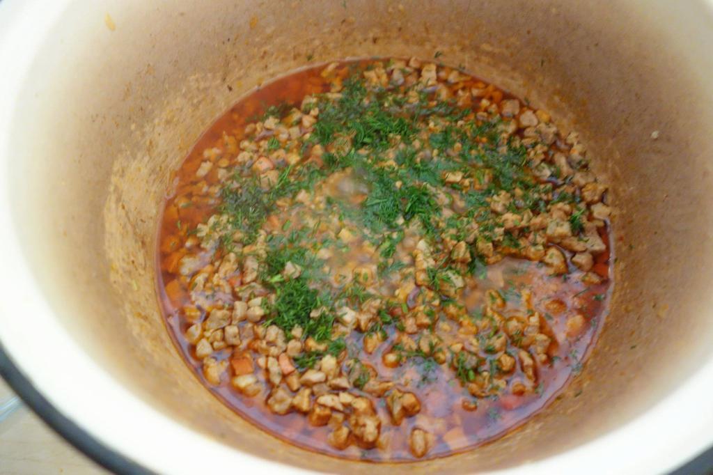 Când îț place cum-îi țâpti păstă ie carnia crudă. Tăt așe faci și cu asta. O lași pă foc mnic să să facă cătingan. Tai mânânțăl tri cepe, le pui și pă iele păstă carnie și amesteci, mai pui thiperi și scuturi o snicie die cimbru uscată, pui și poprică dulcie. Poț punie și poprică tocată di la borcan. Numa’ sare nu pui cam diodată că poatie hi sărată pecia afumată. Die sare coț numa’ când a hi gata tocana asta, că vez, i-on fel die tocană mai strânsă, fără mult zoaft. Cătă când îi gata pui on pumn bun die morareu verdie. Tătdiauna să știi, undie-i cureti morat și afumătură, morareu și cimbru nu trebe să lipsască! Ala-i gustu bun, să hie aieste laolaltă. Morareu și cimbru le pui musai, că-s verz, că-s uscatie!