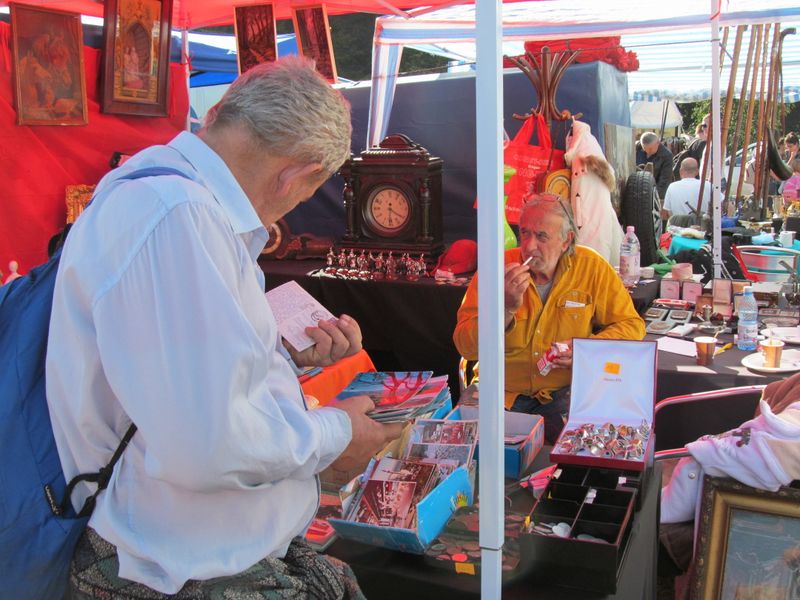 “Dom’le, cu cât dai lopățica asta militară?”, întreabă o femeie, aflată lângă o masă pe care obiecte de colecție, unele probabil valoroase, cel puțin la ce preț se cerea pe ele, erau așezate ordonat. “Patruzeci de lei, că-i veche, doamnă”, i se răspunde. “Bine, doar am întrebat.” “Bine, atunci, doar v-am răspuns.”