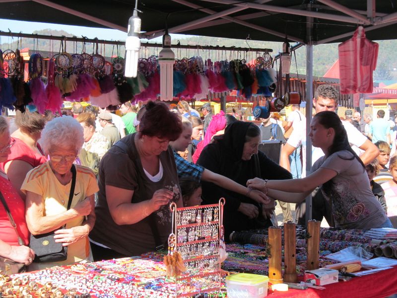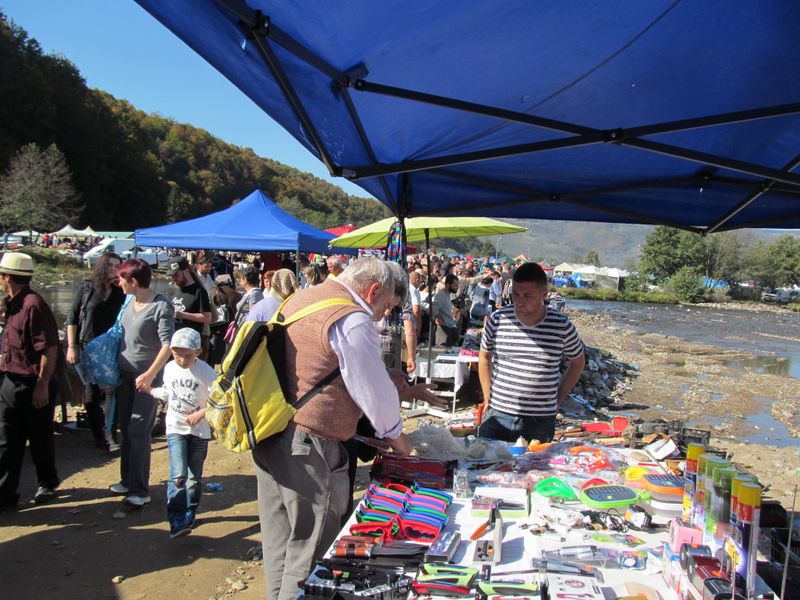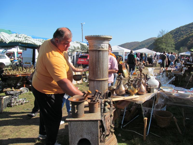 “Băăă, unde te bagi cu mașina? Numa’ așa, să faci praf? Ori vrei să-ți arăți mașina?”, răzbate din murmurul omniprezent al târgului, de la un personaj ce stătea în fața mesei pe care erau înșirate te miri ce. Iar asta pentru că unora, multora, umblatul pe jos li se pare că strică la imaginea de român fudul și “foarte tare, frate!”, așa că încurcă pe toată lumea încercând să-și strecoare limuzina printre oameni și mese. Evident, degeaba, pentru că loc să mergi mai departe nu e. În schimb e un soare torid deasupra capului, umbră deloc, doar dacă te ascunzi pe sub acoperișurile împrovizate ale tarabelor, însă nici chiar căldura, și nici praful, nu poate stăvili puhoiul uman din târg.