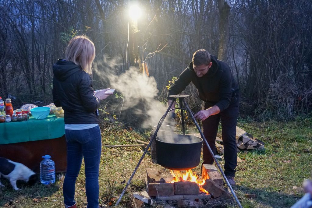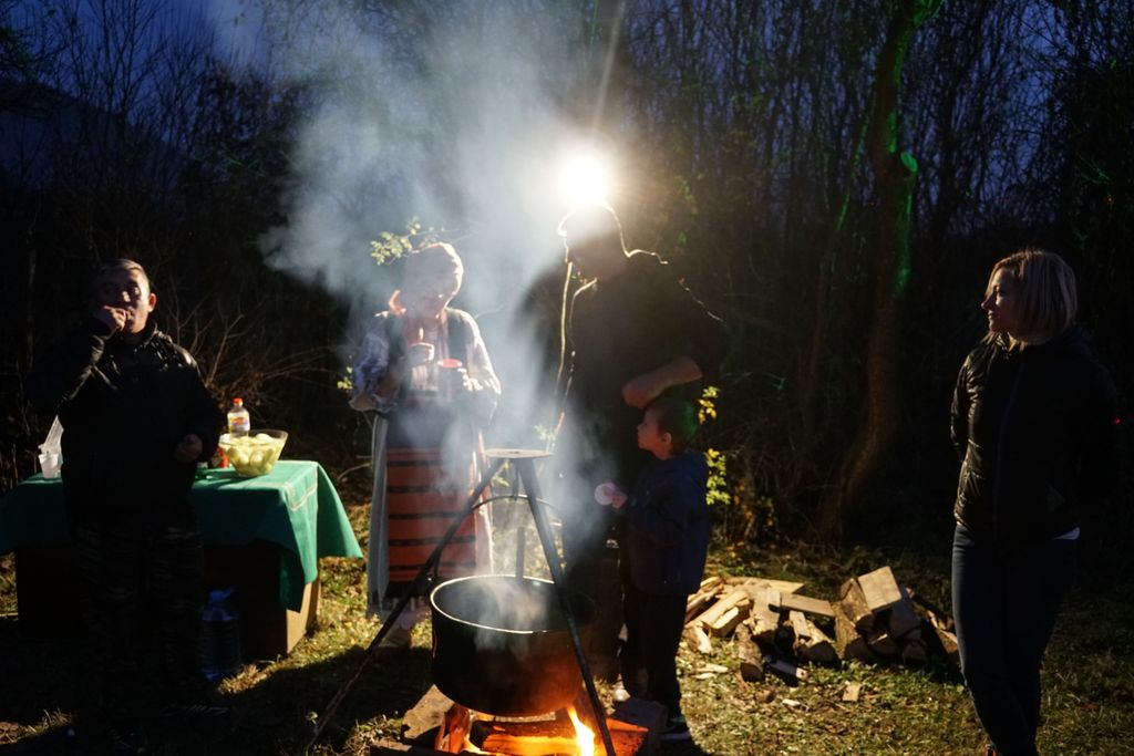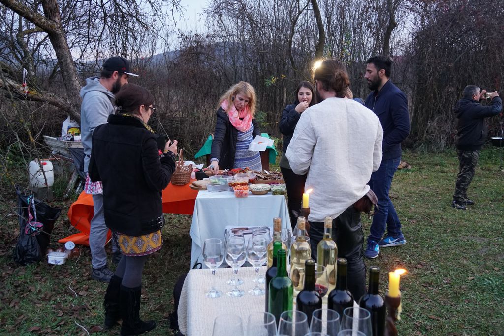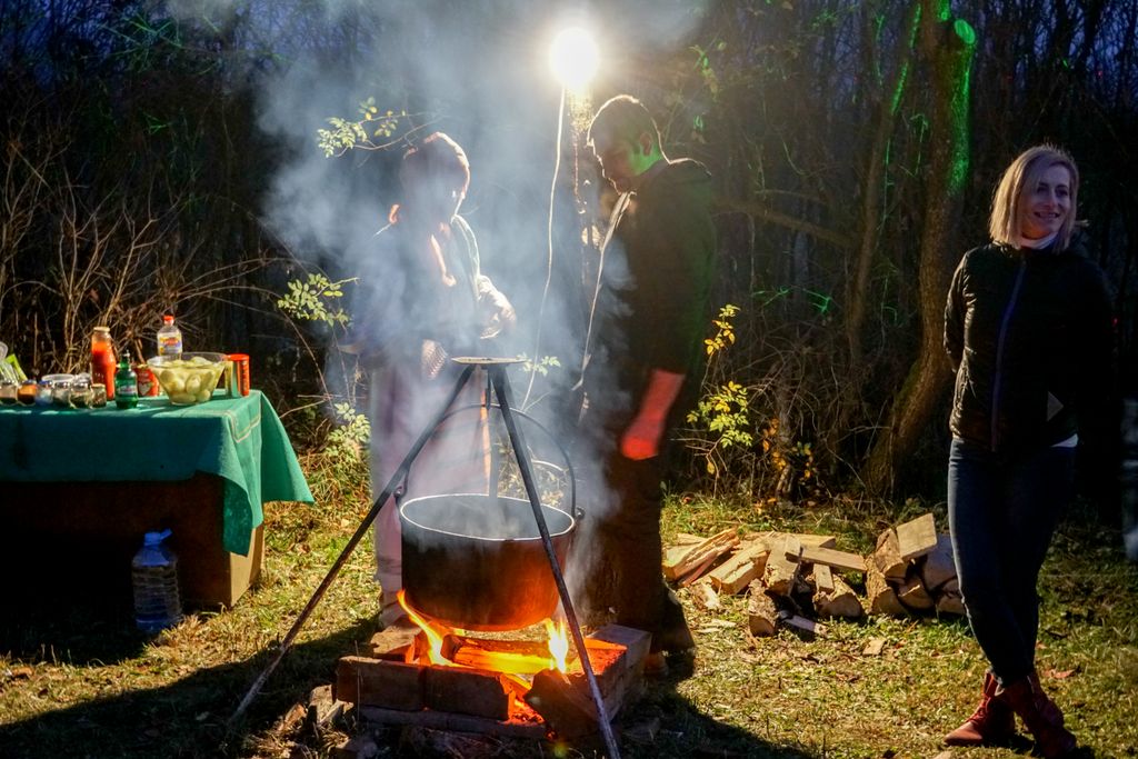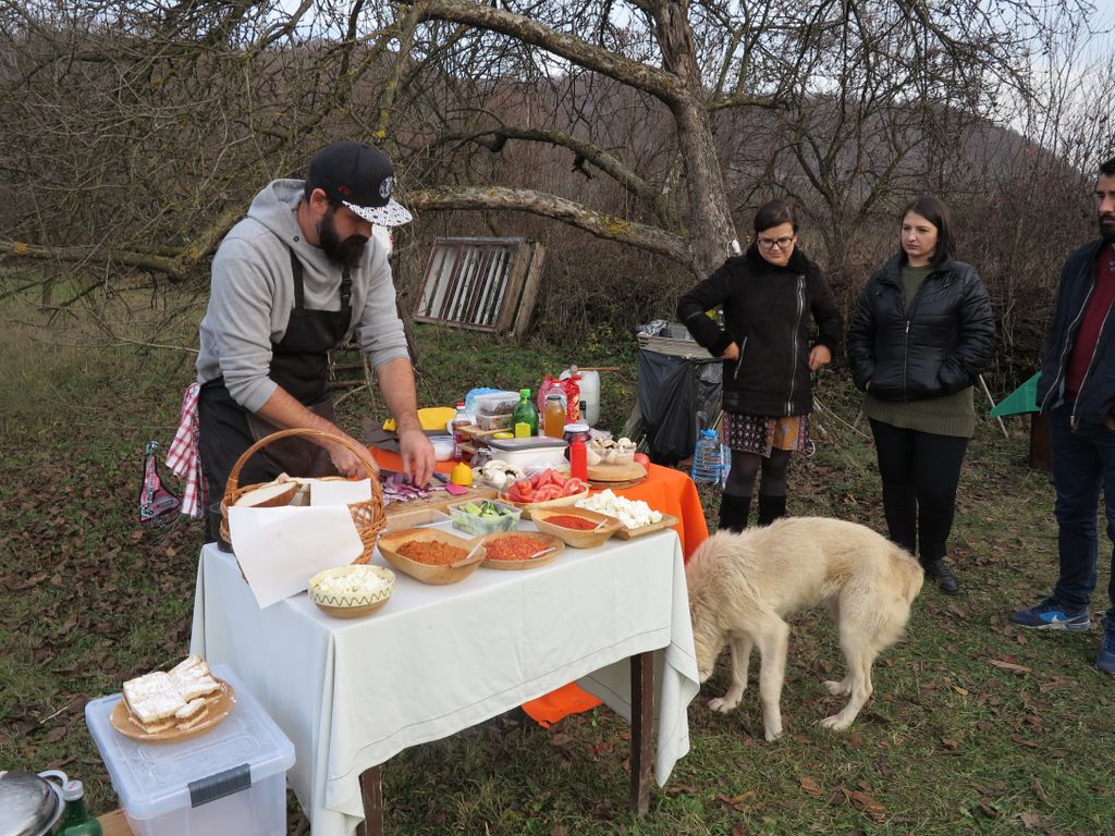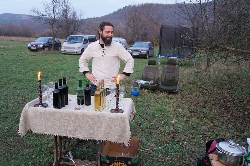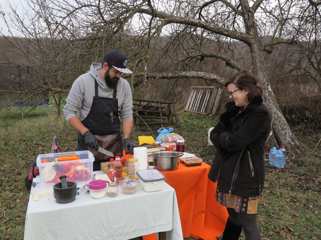 În continuare, cei prezenți au făcut roată în jurul lui Serghei Savin și Valer pentru a se apleca asupra toleranței în bucătărie și a degusta feluritele tipuri de salate, brânzeturi, alături de carne, ciuperci, morcovi, sfeclă roșie în brânză de capră, toate la grătar lângă prăjitura cu mere și dubletele aburind, în timp ce în ceaun deja sfârâiau o parte din ingredientele de bogracs. Și pentru că pe lângă astea la un moment dat merge și un vin bun, la finalul degustării a fost vorba despre toleranța vinului cu Cristian Jugrestan .