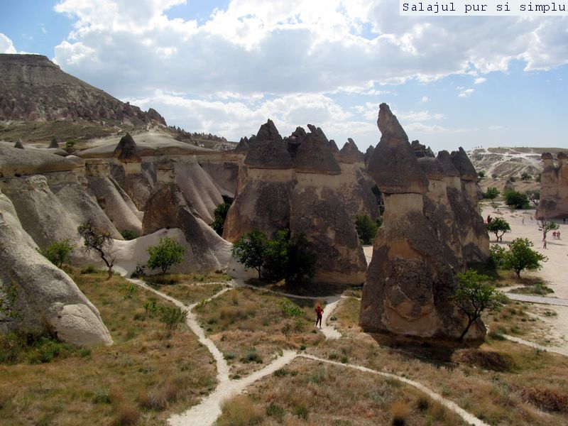 Cine s-a plimbat printre zmeii de piatră, a apucat să vadă fata Cătanei unduindu-şi frumuseţea în gresie sau măcar a ascultat vântul şoptindu-i povestea de dragoste în Grădina Zmeilor din Sălaj, va purta cu el magia acestui loc oriunde ar fi. Şi, da. La mii de kilometri distanţă de Sălaj, în sud vestul Asiei, într-unul din cele mai spectaculos de frumoase locuri din lume, în Cappadocia, acolo unde baloanele cu aer cald împânzesc cerul odată cu răsăritul, îşi pierd urma printre văile conurilor de piatră şi coboară când soarele este doar la o lungime de suliţă pe cer, există un loc unde fata Cătanei, frumoasa împietrită din Grădina Zmeilor sălăjeană, s-ar fi simţit ca acasă. Şi asta pentru că Paşabağ sau Monks’ Valley, în traducerea localnicilor Grădina lui Paşa, nu este altceva decât sora orientală mai mare a Grădinii Zmeilor din Gălgăul Almaşului, cu acelaş gen de gresii care îşi unduiesc înălţimile către cer, cu platouri de unde poţi explora cu privirea depărtările, cu oaze de verdeaţă, cu cărări tainice ce te ademenesc în interiorul pereţilor, ca într-un tunel către lumi paralele, ca apoi să te lase baltă şi să se închidă când te aştepţi mai puţin şi până la urmă cu alei pietruite, cu maşini şi autocare pline cu turişti.