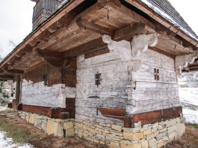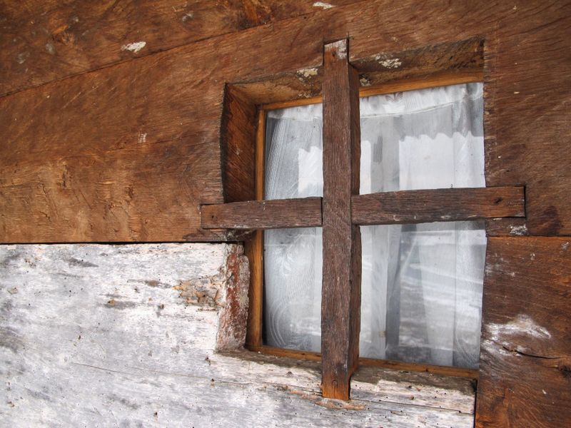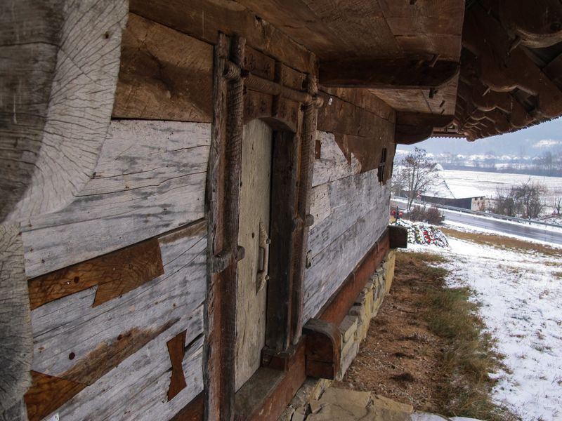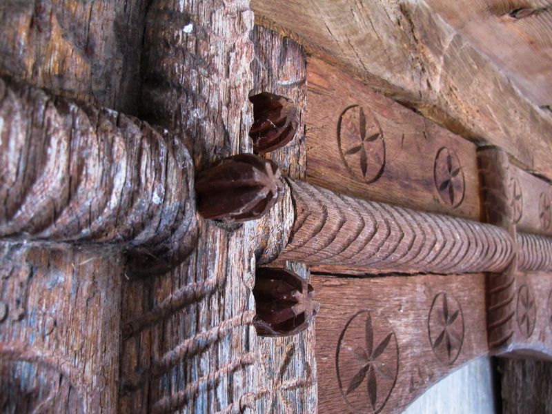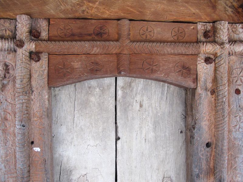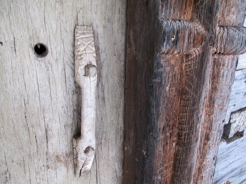 Ușa de la intrare, la fel ca la multe alte biserici vechi din lemn, e mult prea mică și nu are cum să nu-ți ridice un semn de întrebare: De ce e atât de mică? Se spune că dimensiunea ușii e intenționat aleasă așa, pentru ca atunci când intri în acel loc, să te apleci, semn al umilinței. Însă, de ce să fii forțat de dimensiunea ușii să te apleci în fața… oricui ar fi, asta n-ar trebui să vină de la sine? Dacă te apleci din cauza dimensiunilor ușii, și nu pentru că așa simți, ce rost are să intri? Și-apoi, în casa spiritului nu ar trebui să te simți mai degrabă înălțat decât umil? Și, tot punându-mi întrebări, o gaură de lângă mânerul de lemn al ușii mi-a atras atenția, așa că m-am aplecat în dreptul ei și am încercat să văd dincolo de ușa închisă. Nu am reușit să văd nimic, însă în cele câteva secunde în care încercam să scrutez întunericul acelei găuri, timpul m-a ajuns din urmă și m-a tras înapoi.