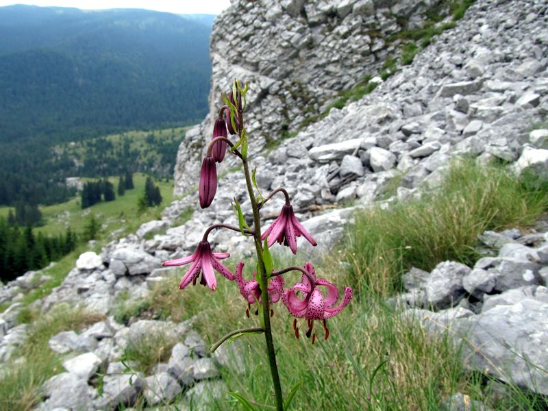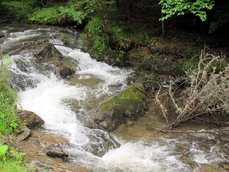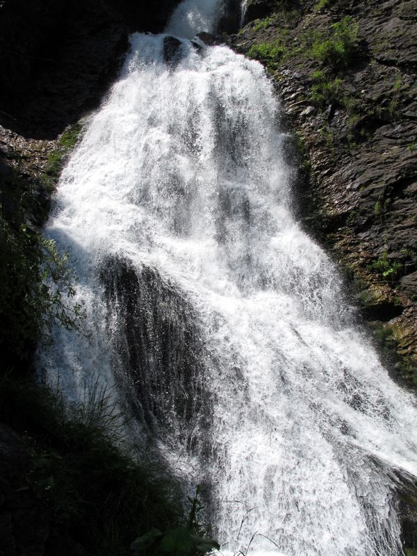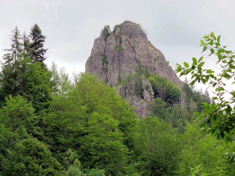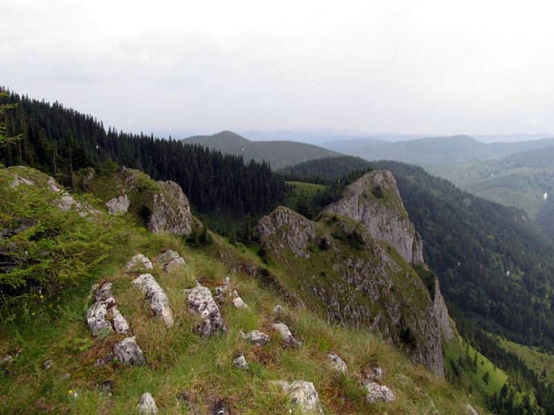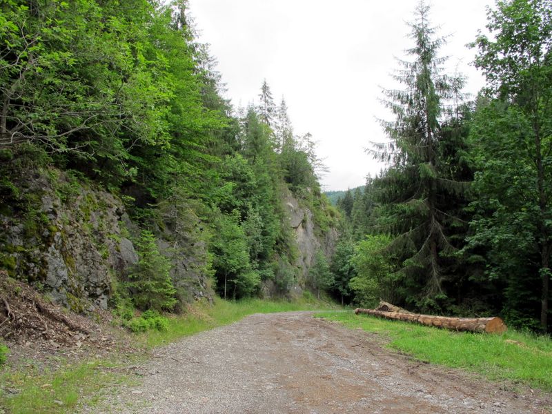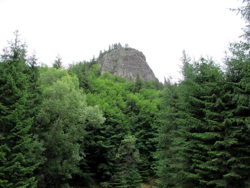 Am trecut de cascadă, am urcat panta abruptă care te duce deasupra ei, apoi am trecut și de punctul Salvamont și de cei câțiva grătaragii din zonă. Drumul, destul de ușor, e chiar reconfortant, și, după vreo doi kilometri ajungi la o zonă cu nisip, de unde, în dreapta, se zăresc niște stânci. Evident, am lăsat drumul forestier și am luat-o într-acolo. Am urcat peste un covor de piatră, de parcă ar fi curs pe acolo, cândva, lavă, apoi am intrat în pădure, și, după puțin timp, am dat de o pantă mult prea abruptă pentru pedalat. De fapt, de acolo, împinsul bicicletei a devenit o obișnuință. Însă peisajul din jur ne-a făcut să uităm de efortul depus, și tot împingând, am ajuns aproape de baza stâncilor – două roci sedimentare calcaroase uriașe, albe, aproape lucioase, foarte abrupte. Am lăsat bicicletele sub un brad.