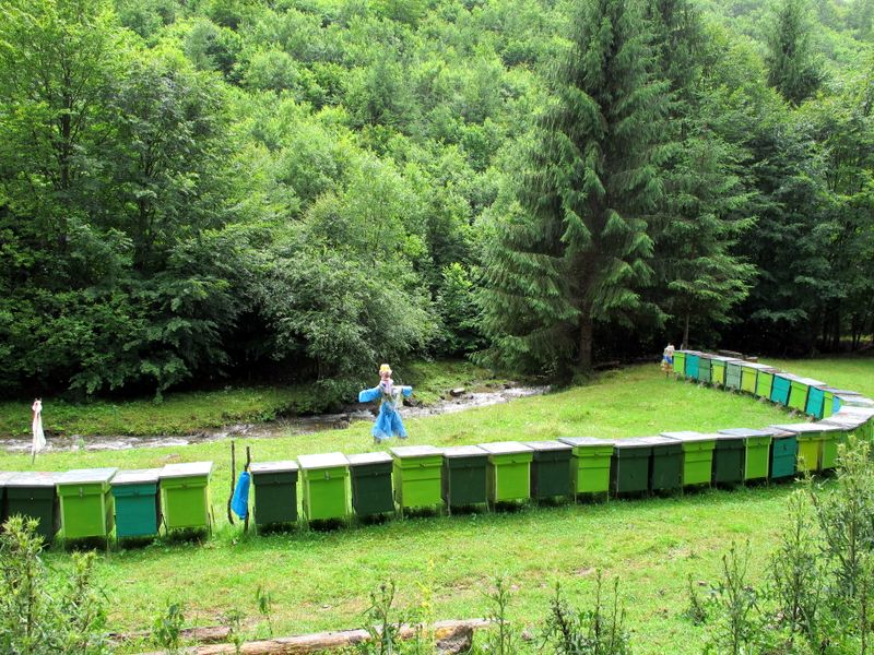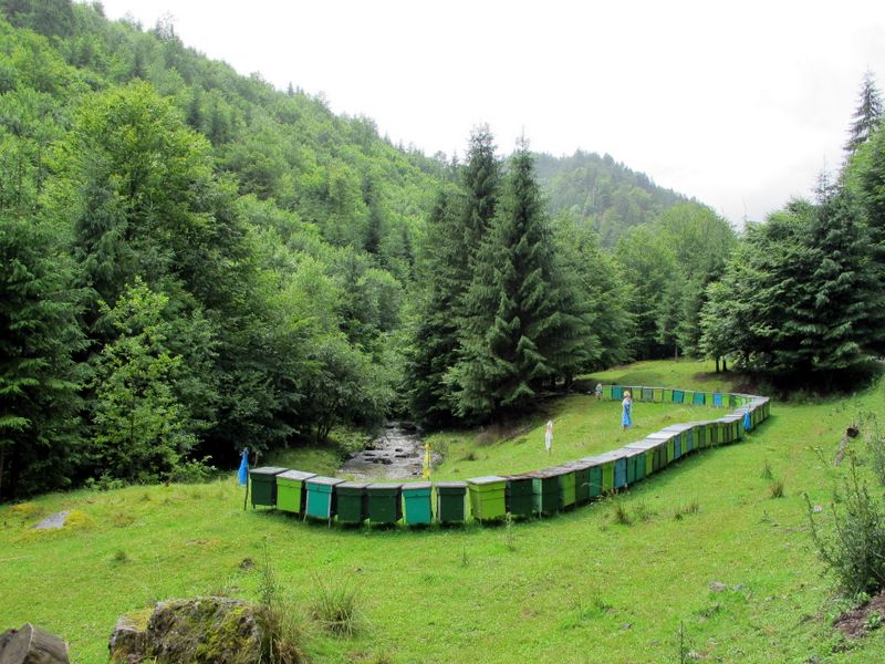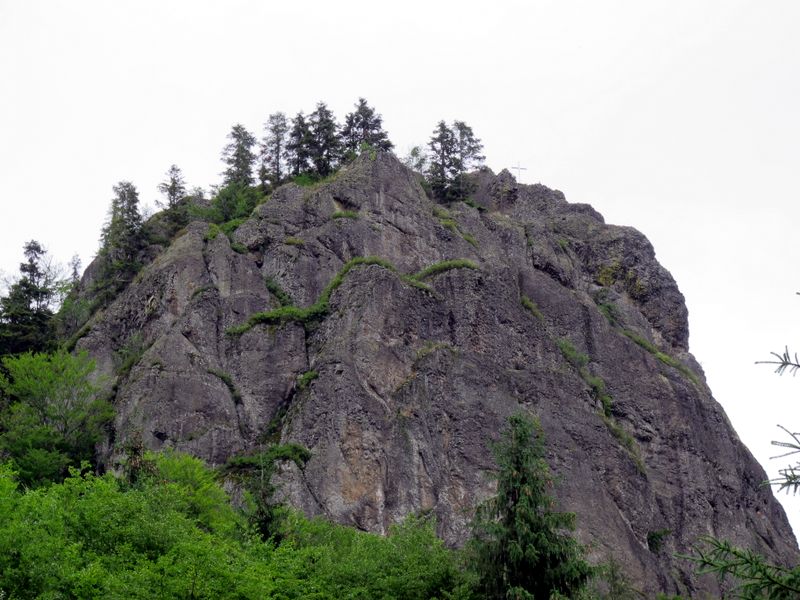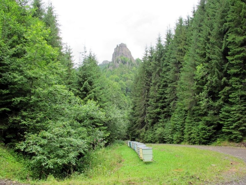 Am văzut-o și de departe, însă, oprit lângă un șir de stupi de albine, pentru o poză, după ce am fost tamponat de câteva albine năuce, Pietrocul a părut un uriaș gata să te arate cu degetul, iar singurul gând a fost cum să ajungi acolo, cât mai aproape. Lasă, poate la întoarcere. Iar întoarcerea a venit mult mai repede decât credeam. După ceva timp de pedalat prin ploaie, și uneori împins de bicicletă prin noroiul punându-ți piedică la fiecare pedală, uneori pe pante de 14, 16 și chiar 18%, drumul, rupt de viiturile din zilele acelea ploioase, cu copaci rupți aruncați de-a valma, a devenit imposibil de continuat. Plus că ploaia nu dădea niciun semn că ar vrea să se oprească, dimpotrivă. Așa că am făcut drumul înapoi, apoi am luat-o pe un alt drum, care ducea și mai aproape de stânca uriașă – Pietrocul cu Cruce (Biserica Frăsinetanilor). Alte pante abrupte, pe traseul care duce la Refugiul Vlădeasa, aceeași ploaie măruntă, încăpățânată, renunțat înainte să începi să dârdâi de frig, înapoi, pe lângă Pietroc, în sat…