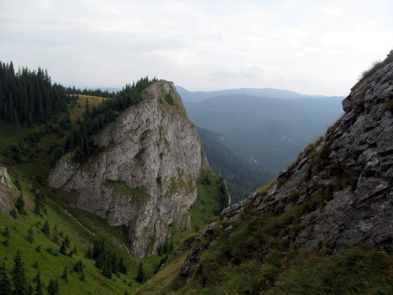 De sus, de pe stâncă, priveliștea te amețește, și la propriu, și la figurat. Iar cățăratul fără bocanci, cu pantofii pentru bicicletă, a fost chiar o provocare, e drept, una fortuită – împinși de dorința de a ajunge sus, pe vârf, am uitat că nu eram echipați pentru așa ceva. Totuși, a meritat fiecare bolovan luat peste picioare. Dedesubt – verdele pășunii, presărat cu brazi și cărări de piatră. În dreapta, Transvlădeasa. Și am mai fi rămas, făcându-ne planuri, ori privind încântați în jur, dar deasupra, norii negri se adunau cu viteză, dând semne de furtună, și numai de fulgere nu duceam lipsă acolo, pe creastă, pe post de ținte mobile. Așa că am dat semnalul de coborâre. Rapid, cât se poate de rapid. Și nici n-am apucat să coborâm bine de pe stânci, că fulgerele au început să apară. Am recuperat bicicletele, apoi, dându-ne seama că suntem și mai expuși, cu bicicletele din metal lângă noi, am luat viteză, către pădure, privind mereu în urmă, la Pietrele Albe, ca și cum am fi lăsat acolo niște prieteni.