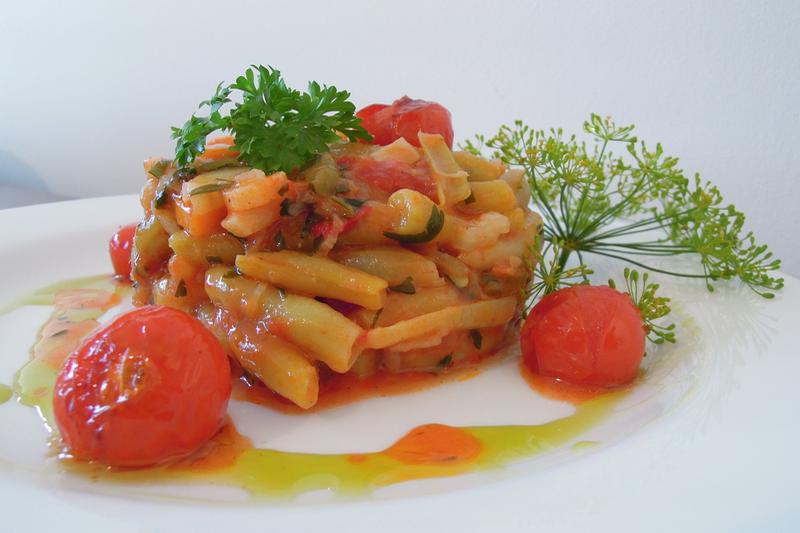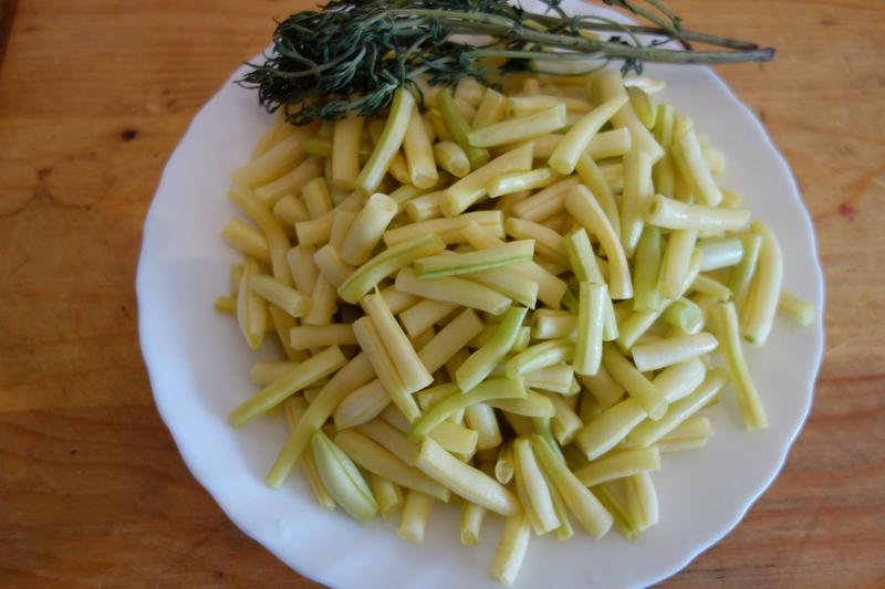 „Aleji păstăile, le speli, le rupț vârvurile și le tai cam cum îț plac die lunji. Ț-oi spunie cum să faci păstăile și altăcum, nu numa’ zamă cum ai mai făcut. Asta-i o mâncare scăzută. Hierz păstăile în apă cu sare. Pui la hiert și odoauă frunză die țeler și musai să mai pui și tri hire die cimbru verdie. Amu ai morcoz și petrinjei noi, din răritură. Corățăști doi morcoz, doi, tri petrinjei și-i tai roatie. Mai tai coștie și on dărăbuț die țeler. Tăt amu tai și atartie tri thipăruși și o ciapă. Pui oloi înt-on laboș și friji die-nceput ciapa, o friji așe cătingan, n-o arz!