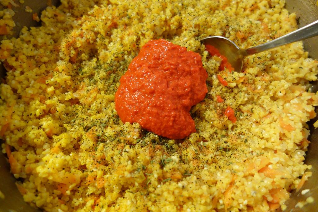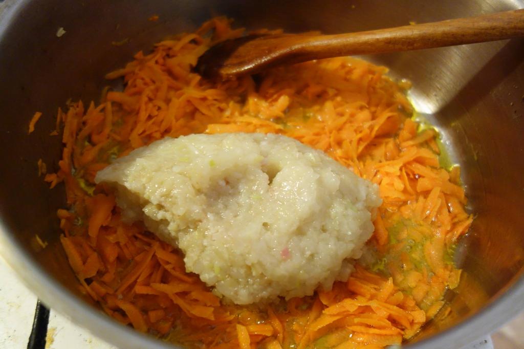 „Tăt ț-am spus die păsatu’ și die mălaiu’ die pârgă. Amu ț-oi spunie cum să faci piroștiele cu păsatu’ ista. Piroștie die post. Speli binie păsatu’ în mai multie ape, cum ț-am mai spus. Să mai arădică hospele și gozurile, le țâpti p-aieste și iară pui apă și tăt așe. Când l-ai gătat die spălat lași păsatu’ o vreme în apă rece. Tai o ciapă dhigană ș-o cârcălești în oloi. O tai așe mai mare. Când s-o răcit o treci pân moșină. Doi morcoz faini îi răzălești pă razalău mare și-i pui să să rumeniască on ptic în oloi, să moaie ii ce să moaie, pui ciapa păstă morcod, mai friji, amesteci ș-amu pui păsatu’. Amesteci, pui sare și thiperi, adauji apă caldă și lași cătingan să să umfle păsatu’, da tăt amesteci. Atâta îl țâi pă foc până vez că să leagă diolaltă păsatu’ și îi mai moale. Când apa o scăzut, să cam prindie păsatu die fundu laboșuli. Amu-i gata!