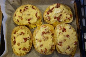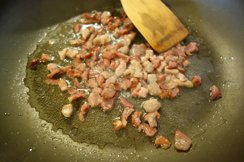 Tai coscuță mnici on dărăbuț die șoancă, di-aceie afumată, di pă rudă din pod. Amu a hi îndiețată, așe-i bună. Și clisa îndiețată-i tare bună! Friji coscuțăle ieste înt-o lespedie în care ai pus o lingură die oloi. Friji binie, binie șoanca, da’ n-o lași să să ardă, să nu hie tare uscată. O scoț dietilindi p-on blid. Tai scrijele o ciapă digană ș-o friji până să moaie binie. O friji tăt în ala oloi. Pui păstă ciapă sare și thiperi, o scoț din oloi pă alt blid. Tai ptita scrijele potridite și pui scrijelele în tăpșia care-ț vujeștie în ler. Le pui în tăpșie una lângă alta. Împarț ciapa friptă pă feștecare scrijea die ptită. O lași așe.