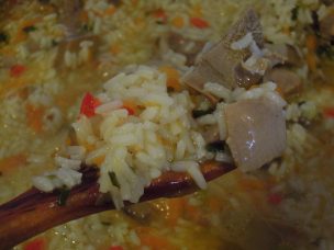 M-ai întrebat die spăl rișcașu. Îț spui drept, io nu-l spăl, numa-l aleg. Așe am făcut dintătdiauna. Când carnia-i moale pui rișcașu, sare die mai trebe, ca-i mai pus doară, thiperi. Amesteci, lași să-nciapă a hierbe, pui fidieu și lași focu încet, încetuț. Înt-on fărtai die ceas ar cam trăbui să hie gata. Iei laboșu di pă foc și-l lași așe cu fidieu pă iel o vreme.